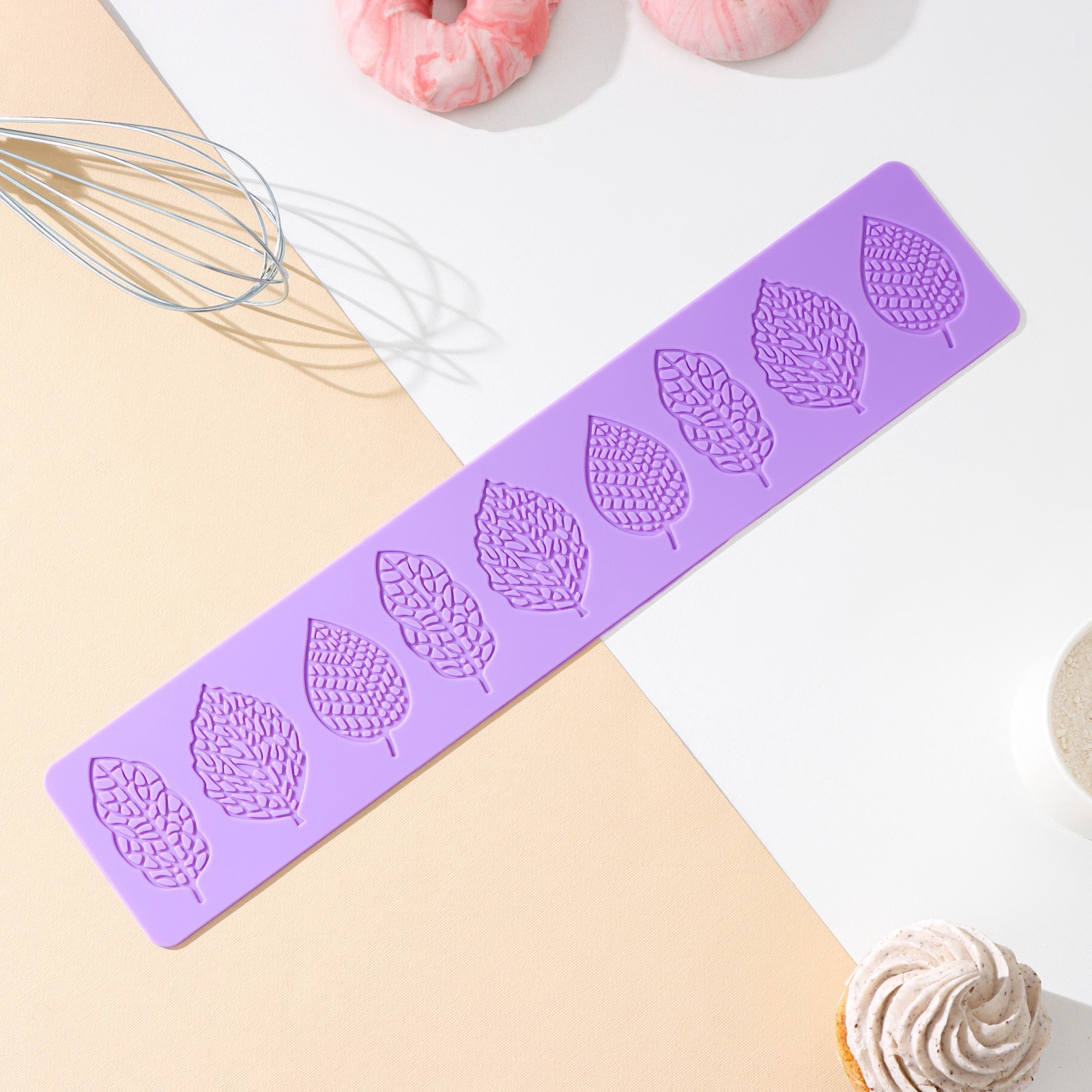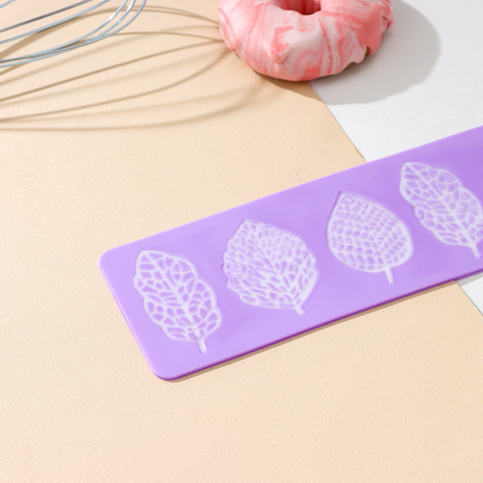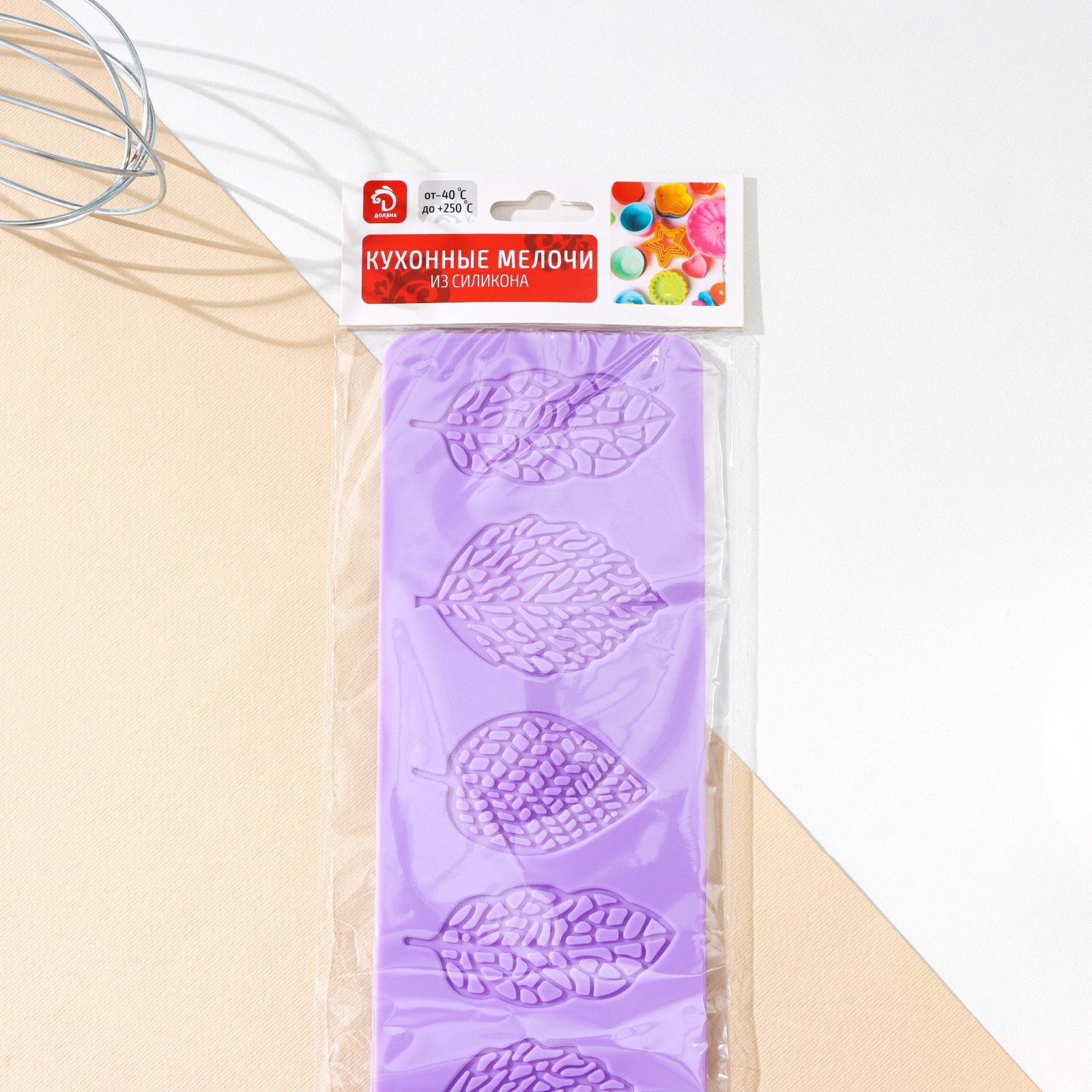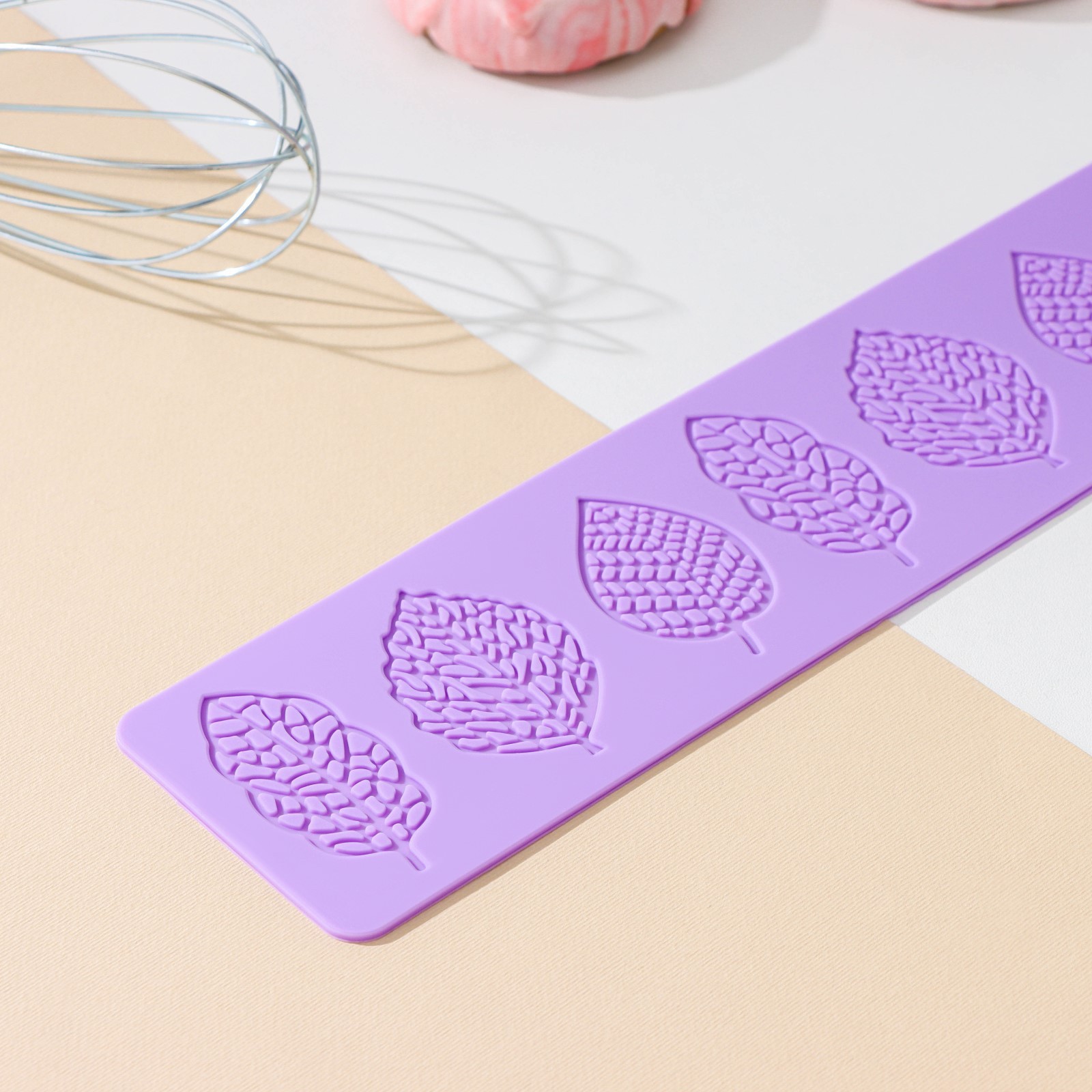 Силиконовый коврик для айсинга доляна «листья ажурные», 37,5x8x0,1 см, цвет сиреневый. Украшение айсингом делает десерты неповторимыми. С помощью силиконового коврика «Ажур» создать красивый орнамент для торта сможет даже начинающий кондитер. Как приготовить айсинг Взбейте 3 яичных белка миксером или венчиком. Добавьте 10 мл лимонного сока и перемешайте. Добавьте 400 г сахарной пудры и тщательно перемешайте. При желании можно добавить пищевой краситель. Когда айсинг будет готов, можно сразу же приступать к изготовлению украшения: Положите на стол коврик узором вверх. Равномерно нанесите айсинг с помощью кондитерского шпателя на всю поверхность. Оставьте примерно на час. Аккуратно отгибая край коврика, извлеките готовое украшение. Цвет: Сиреневый Форма: Прямоугольная Длина, см: 37.5 Ширина, см: 8 Крышка: Нет Материал: Силикон Тип покрытия: Без покрытия Тип: Рельефный Можно мыть в посудомоечной машине: Нет  развернуть описание ▼