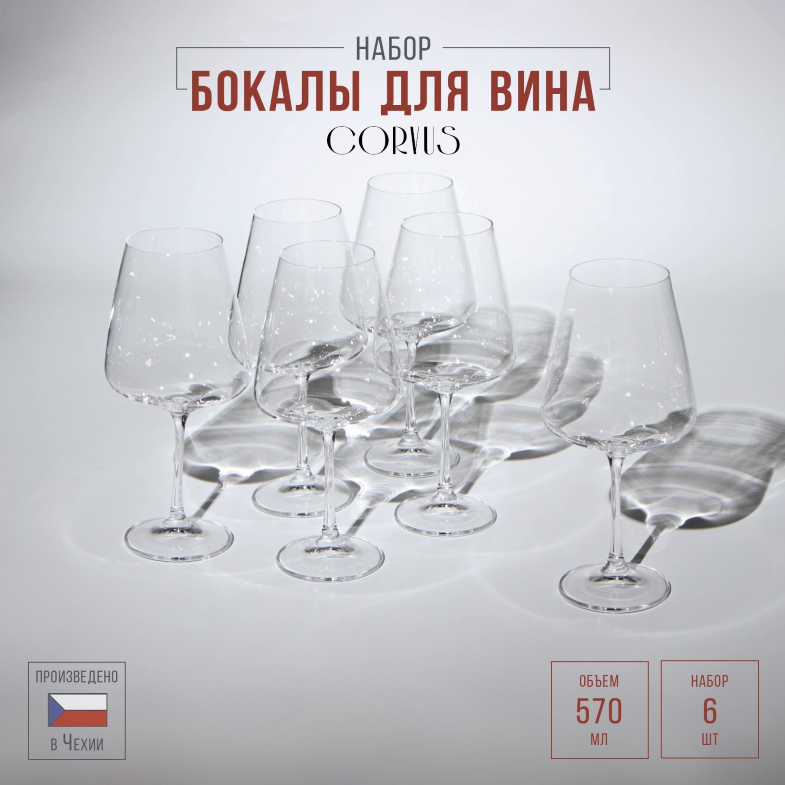 Набор бокалов для вина Corvus, стеклянный, 570 мл, 6 шт