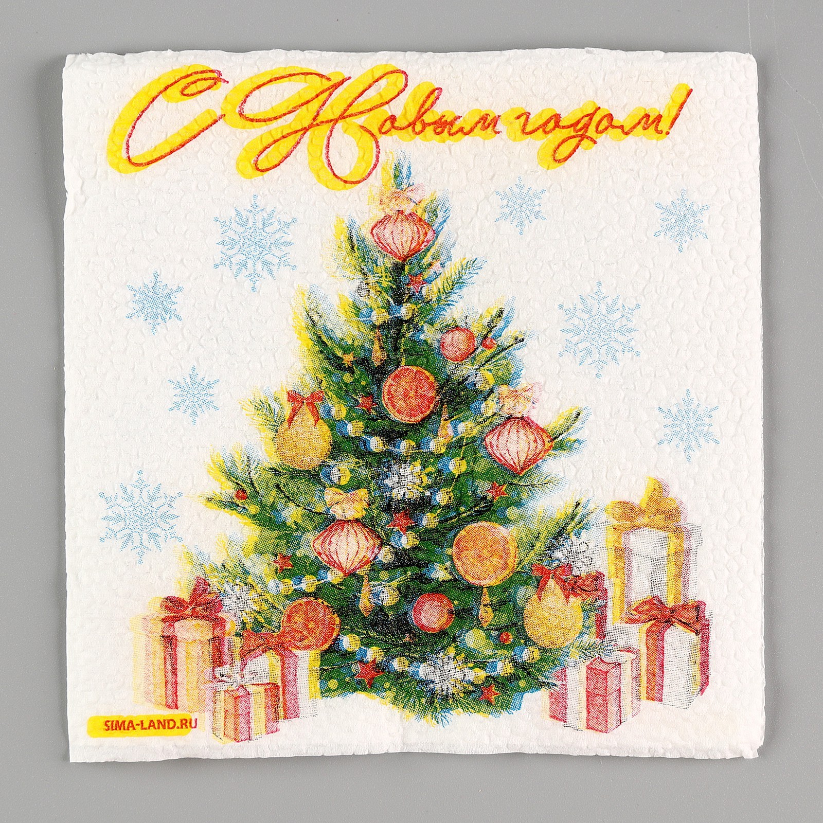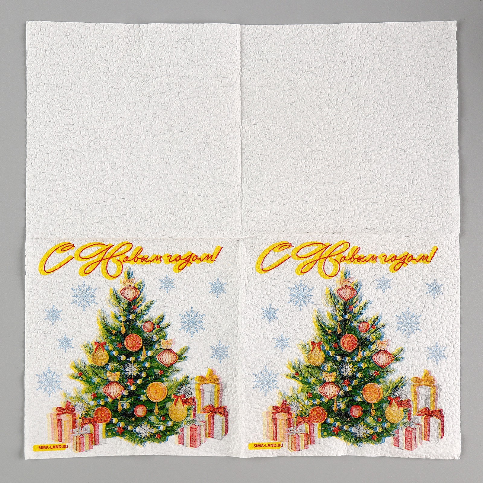 Салфетки бумажные «новогодняя ёлка», однослойные, 24 X 24 см, набор 20 шт., на новый год