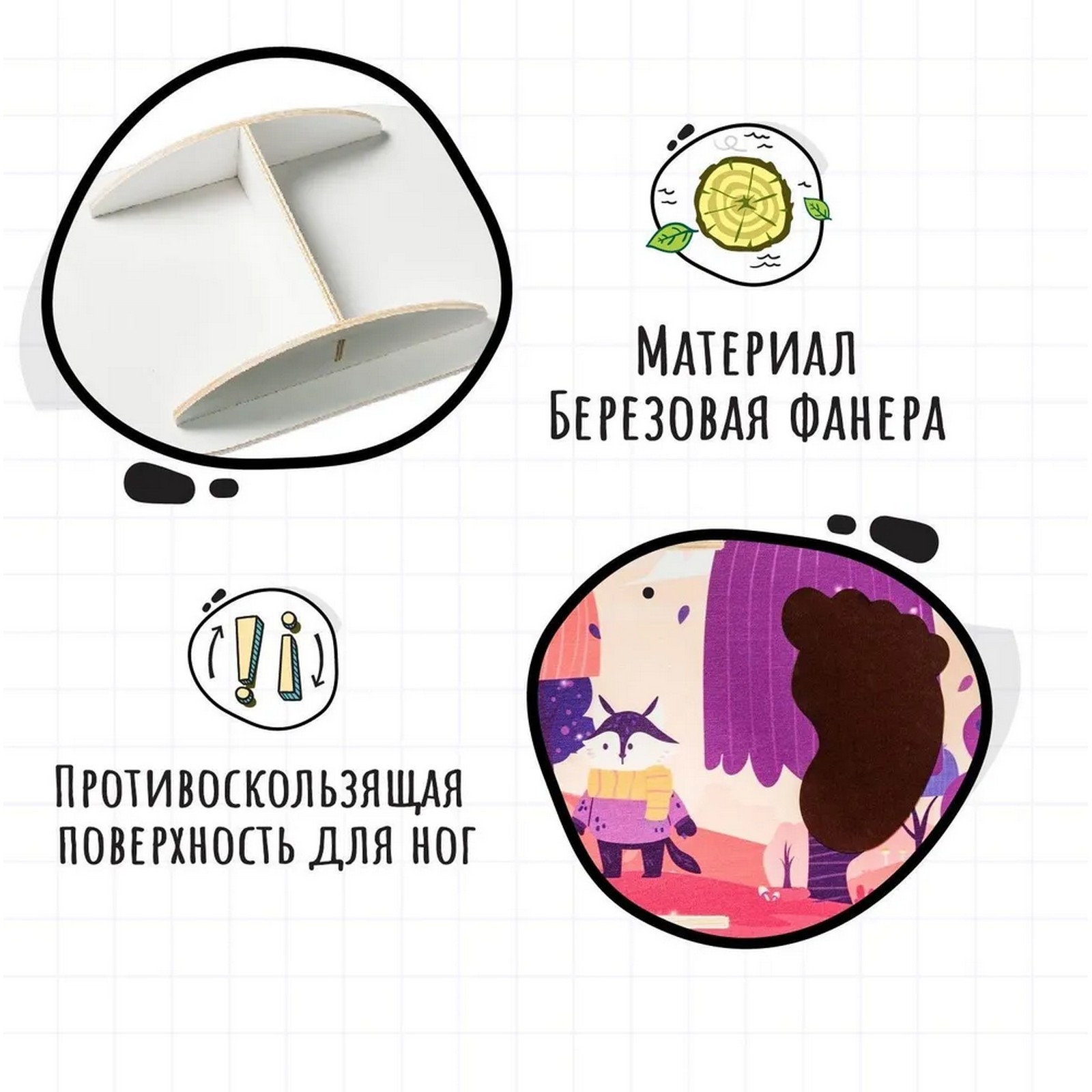 Обучающая игра «балансир. сказка». Развивай координацию движений, ловкость, чувство баланса и концентрацию внимания. Польза балансира: Развитие вестибулярного аппарата: учит держать равновесие, координировать движения и ориентироваться в пространстве. Стимулирует концентрацию внимания: удержание равновесия требует сосредоточенности и внимания. Способствует развитию креативности: придумывайте новые трюки и игры с балансиром. Преимущества балансира: Безопасность: высококачественные материалы и безопасная конструкция. Универсальность: подходит для детей от 3 лет. Компактность: легко хранить и брать с собой в дорогу. Разнообразие: множество вариантов игры и упражнений. • Цвет: Фиолетовый Цвет: Розовый Для кого: Для девочки Возраст: От 3 лет Maксимальная нагрузка, кг: 50 Материал: Дерево Жанр игры: На баланс Развитие навыков: Реакция Развитие навыков: Ловкость Вид головоломки: Балансир Количество игроков: 1 - 2 Температурное ограничение: Нет Коврик в комплекте: Нет Ограничители: Нет  развернуть описание ▼