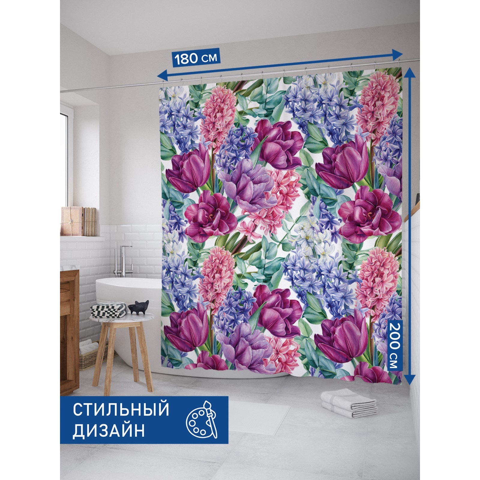 Фотоштора для ванной «весеннее настроение», сатен, размер 180х200 см. Шторка для ванной 180х200 см выполнена из мягкого и приятного на ощупь высококачественного материала «сатен» (100% полиэстер) плотностью 80 г/м2. Изделие обработано устойчивой к загрязнению, влагостойкой, отличающейся долговечностью водоотталкивающей пропиткой, благодаря чему защищает мебель, зеркала, декор, плитку и кафель от брызг и влаги. Занавеска универсальная в ванную и душ, не нуждается в утяжелителях и магнитах. Ткань прекрасно расправляется под собственным весом, не прилипает и не сминается во время использования. Отверстия под крючки не имеют люверсов/утяжелителей и обработаны оверлоком. Современная однотонная текстильная шторка для душа комплектуется 12 крючками из пластика, предназначенных для штанги и карниза. Рисунок нанесён на внешнюю сторону изделия с помощью сублимационной печати. Такие принты не боятся влаги, не смываются под горячей водой и не потускнеют со временем. Обратная сторона изделия – белая. С внутренней стороны по краю шторы присутствует цветная полоса и штрихкод, что является обязательной частью товара- без нее корректная печать и идентификация невозможна. Душевую занавеску из полиэстера можно стирать при температуре 30-40 градусов, выбирая деликатный режим стирки и отжим не более 800 оборотов. НЕ ОТБЕЛИВАТЬ! Цвет: Разноцветный Ткань: Сатен : 80 Размер, см: 180 х 200 Тематика: Цветочно-растительная Материал: Сатен Тип крепления: Прорези Состав ткани: Полиэстер  развернуть описание ▼