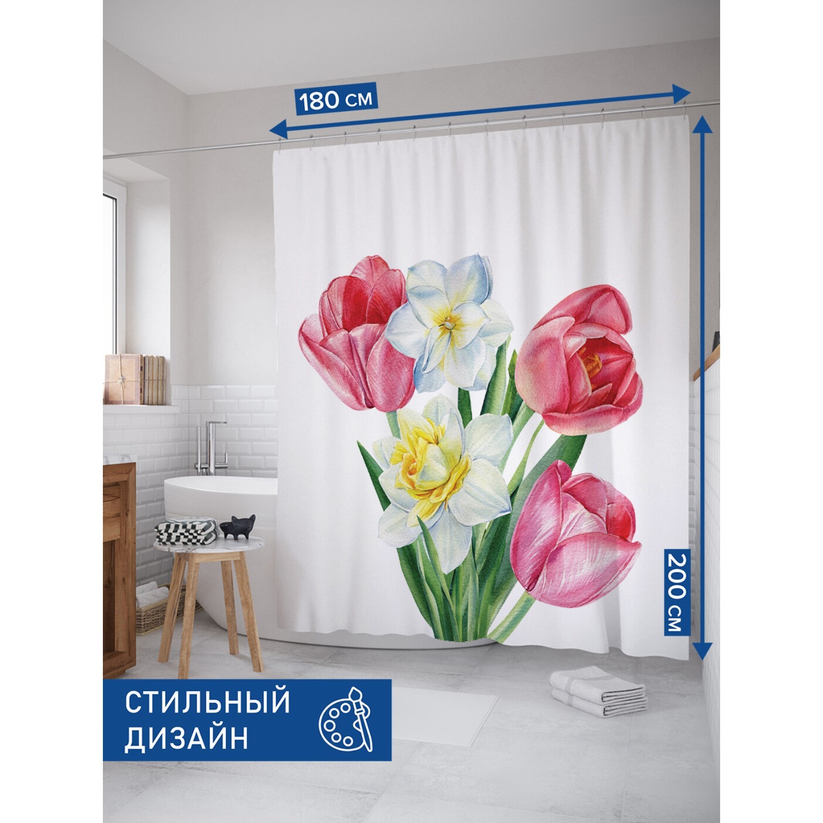 Фотоштора для ванной «весенний букет», сатен, размер 180х200 см