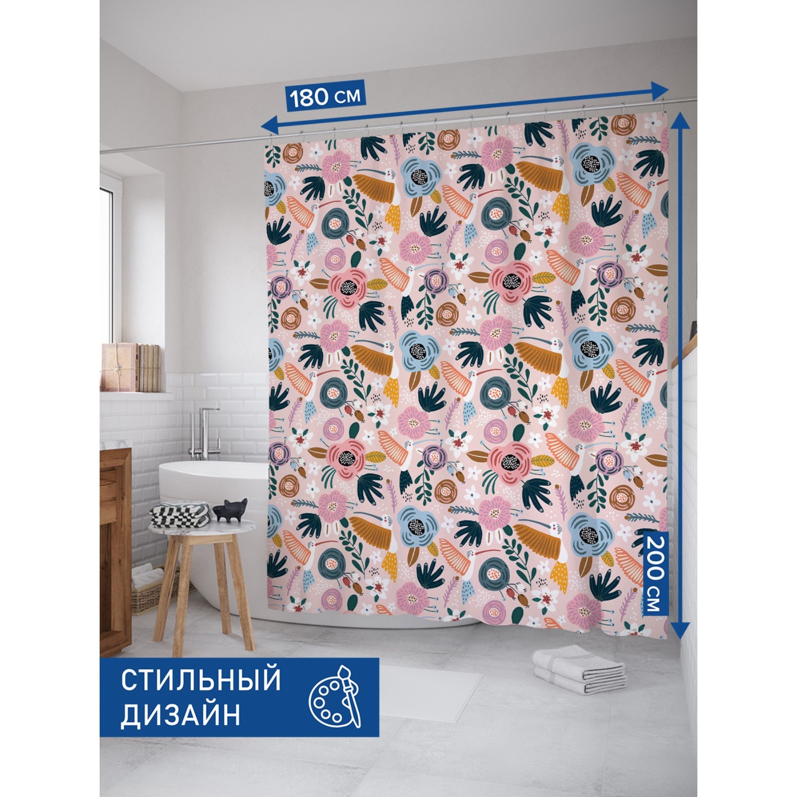 Фотоштора для ванной «тропические зарисовки», сатен, размер 180х200 см