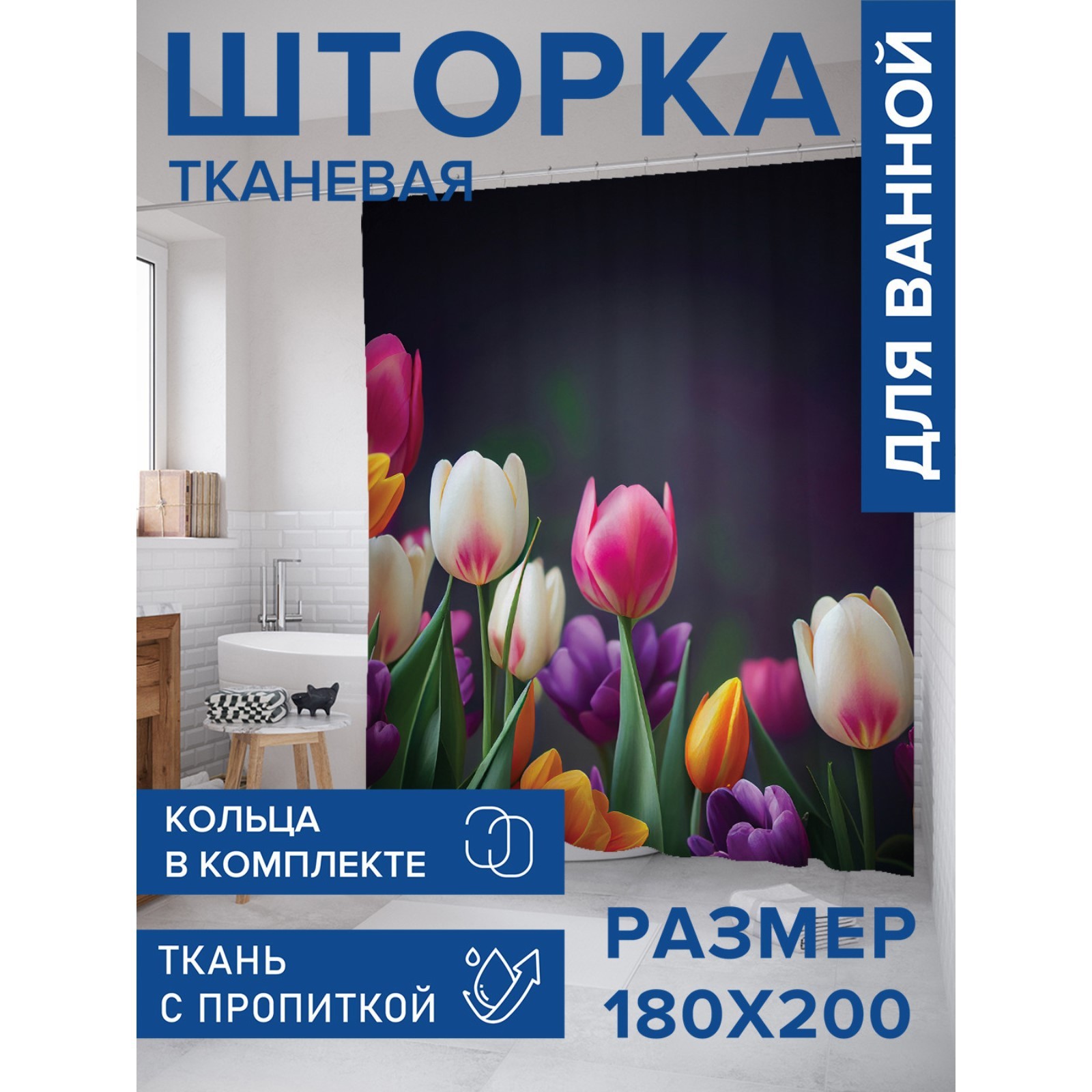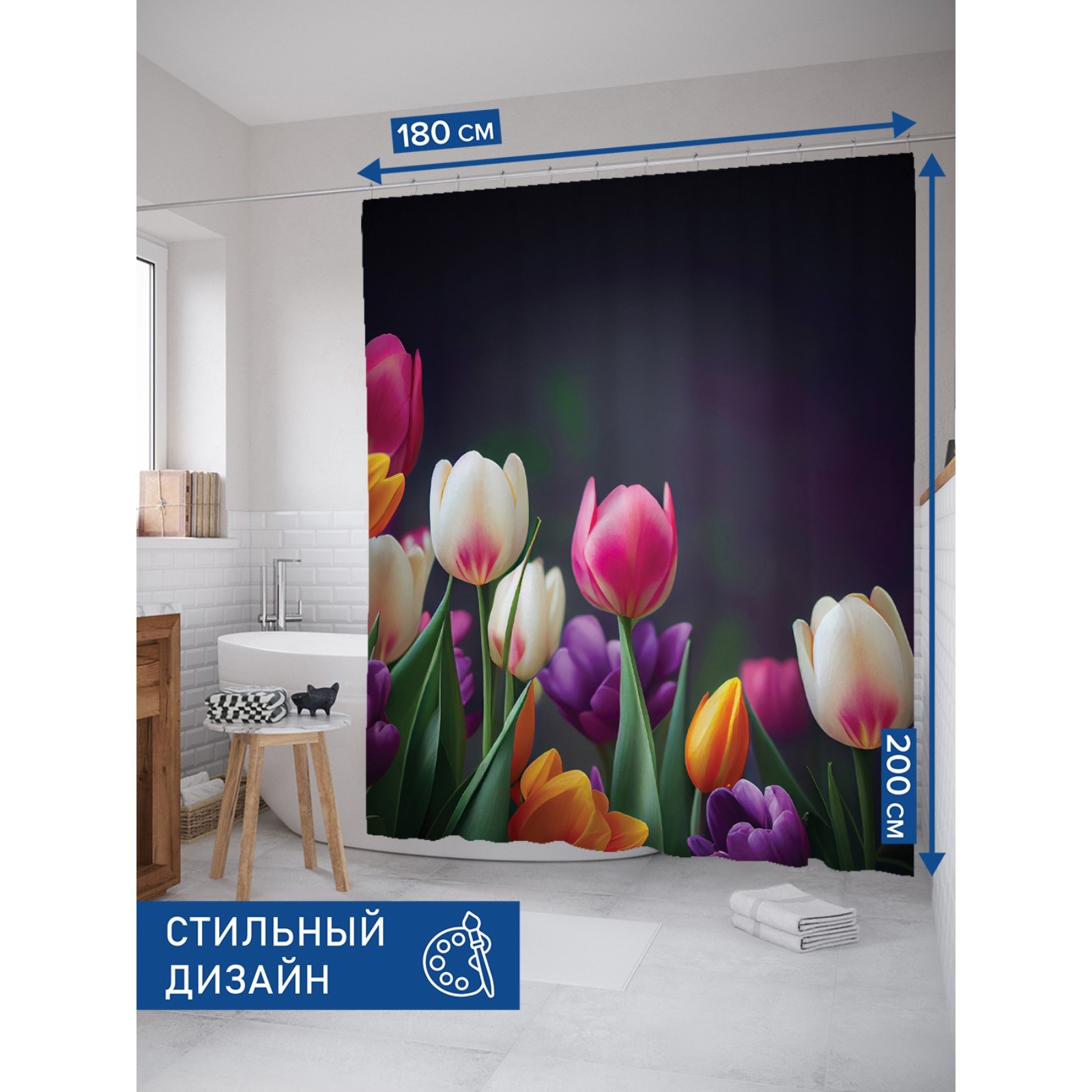 Фотоштора для ванной «весенние тюльпаны», сатен, размер 180х200 см