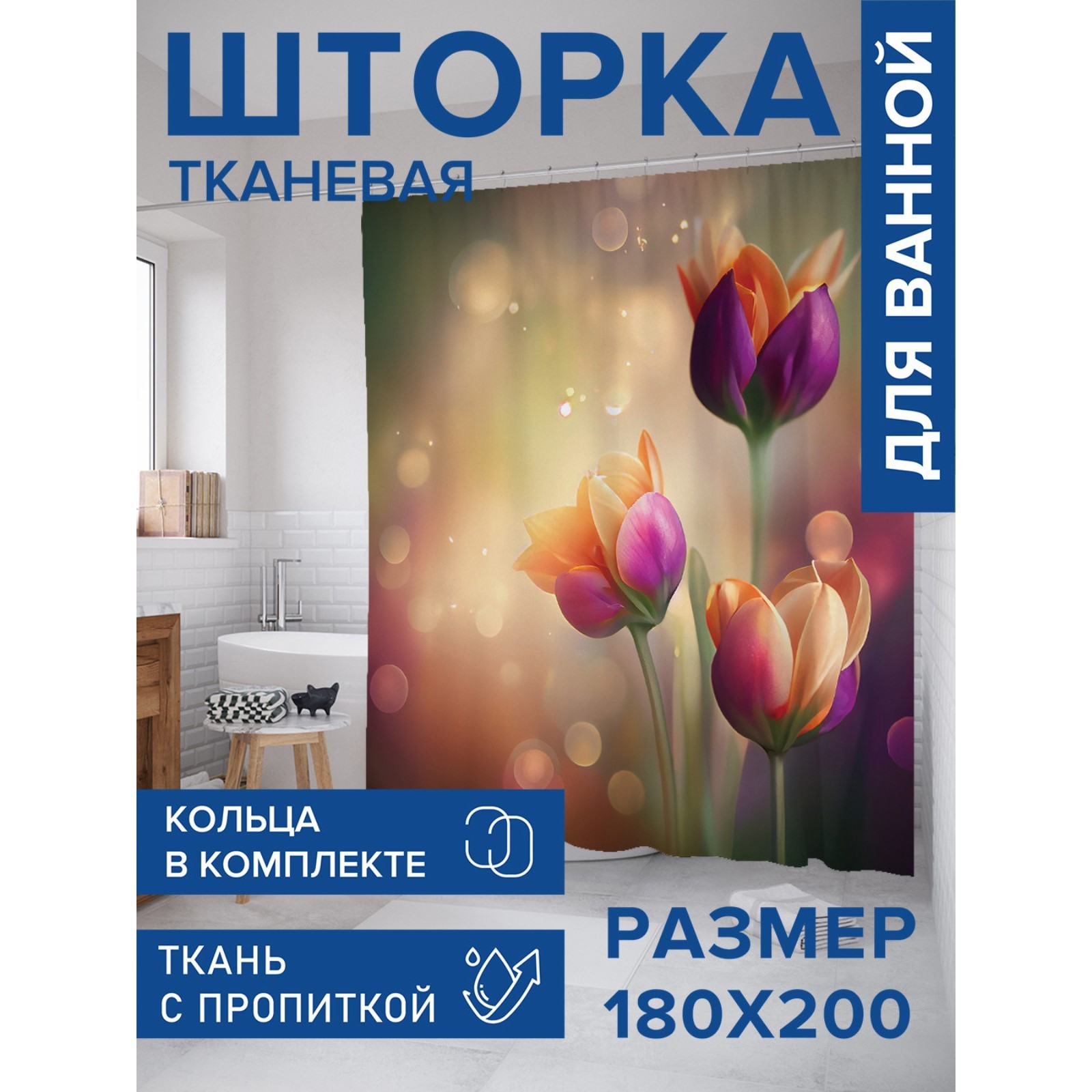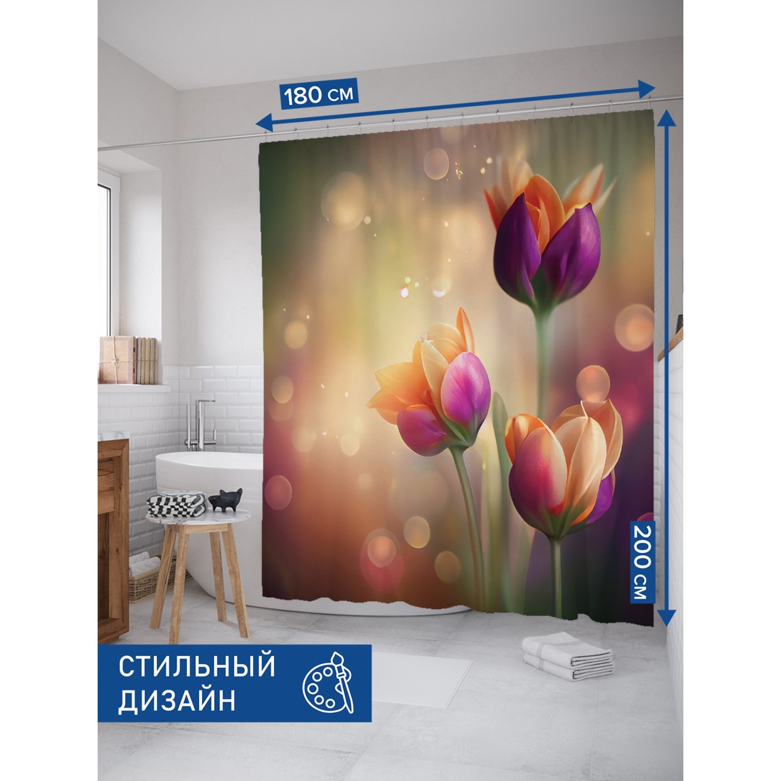 Фотоштора для ванной «утро с тюльпанами», сатен, размер 180х200 см
