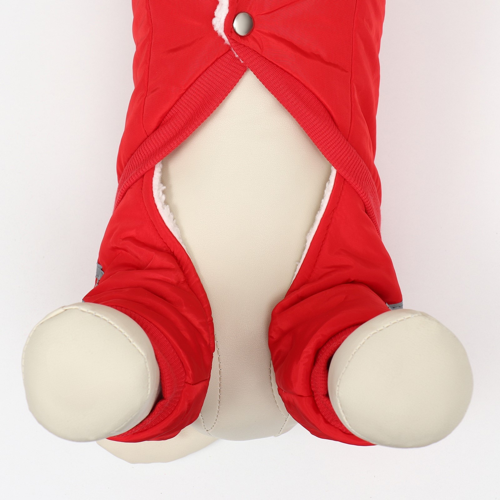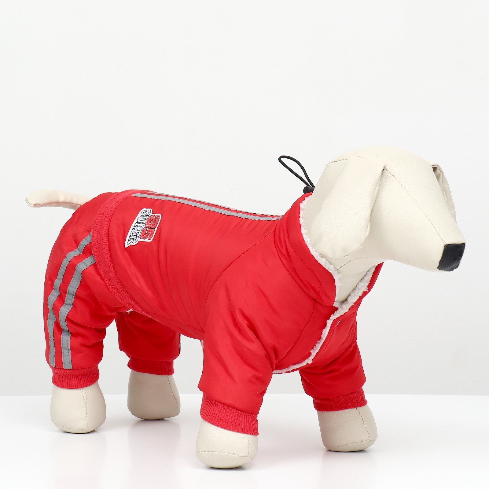 Комбинезон «спорт» с светоотрожающими полосами, размер m (дс 30, ог 40, ош 30 см), красный. Комбинезон Спорт для собак - идеальный выбор для активных питомцев и любителей спортивных прогулок. Он выполнен из высококачественной болоньи, которая обеспечивает комфорт и защиту от холода, дождя и ветра. Светоотражающие полосы на спине и ножках комбинезона гарантируют хорошую видимость питомца в условиях низкой освещенности, что повышает безопасность питомца. Наличие манжетов на ножках позволяет защитить лапы животного от дождя и грязи, а меховой подклад внутри комбеза обеспечивает тепло и комфорт в любых погодных условиях. Комбинезон легко надевается на питомца , благодаря застежкам на кнопках. Резинка на воротнике позволяет затянуть комбинезон для лучшей посадки и защиты шеи питомца от холода и ветра. Цвет:Красный|Сезон:Зима|Сезон:Демисезон|Вид застёжки:Кнопка|Длина спинки, см:30|Обхват шеи, см:30|Обхват груди, см:40|Пол:Самец|Пол:Самка|С подкладкой:Да|Вид застёжки:Кнопка|Страна:Китай  развернуть описание ▼