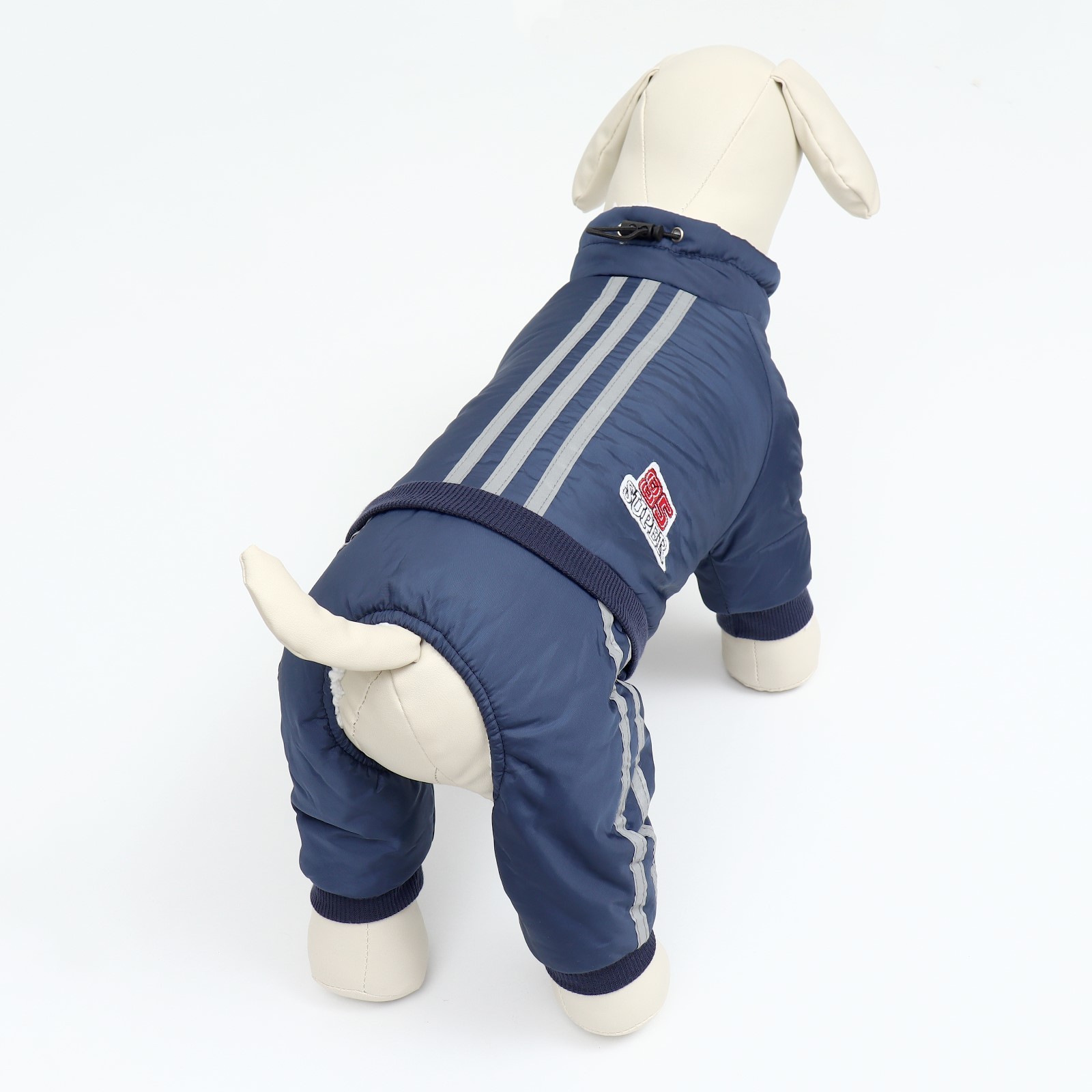 Комбинезон «спорт» с светоотрожающими полосами, размер xl (дс 40, ог 50, ош 40 см), тёмно-си. Комбинезон Спорт для собак - идеальный выбор для активных питомцев и любителей спортивных прогулок. Он выполнен из высококачественной болоньи, которая обеспечивает комфорт и защиту от холода, дождя и ветра. Светоотражающие полосы на спине и ножках комбинезона гарантируют хорошую видимость питомца в условиях низкой освещенности, что повышает безопасность питомца. Наличие манжетов на ножках позволяет защитить лапы животного от дождя и грязи, а меховой подклад внутри комбеза обеспечивает тепло и комфорт в любых погодных условиях. Комбинезон легко надевается на питомца , благодаря застежкам на кнопках. Резинка на воротнике позволяет затянуть комбинезон для лучшей посадки и защиты шеи питомца от холода и ветра. Цвет:Синий|Сезон:Зима|Сезон:Демисезон|Вид застёжки:Кнопка|Длина спинки, см:40|Обхват шеи, см:40|Обхват груди, см:50|Пол:Самка|Пол:Самец|С подкладкой:Да|Вид застёжки:Кнопка|Страна:Китай  развернуть описание ▼