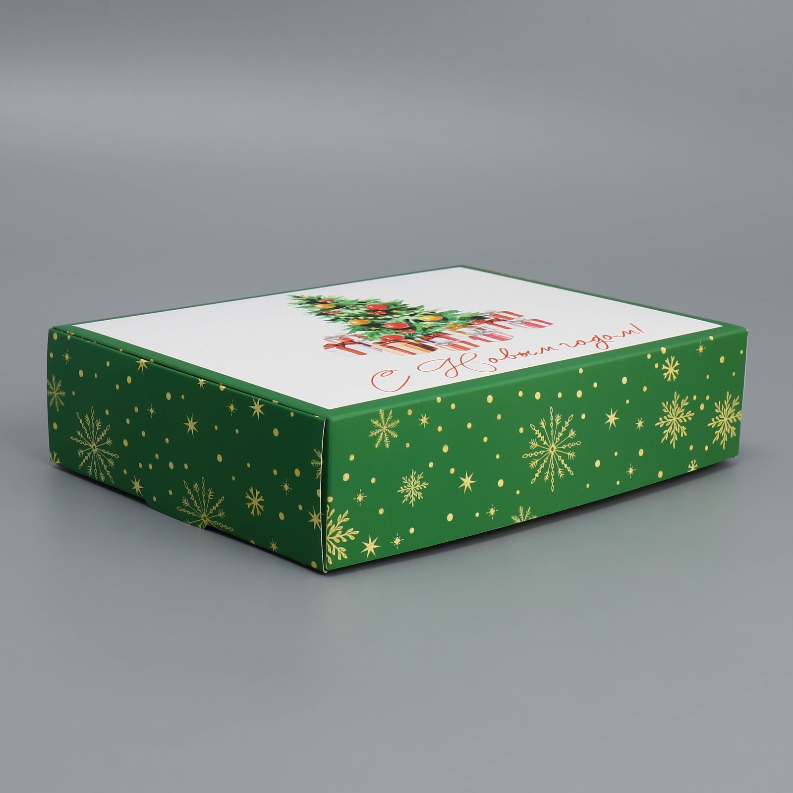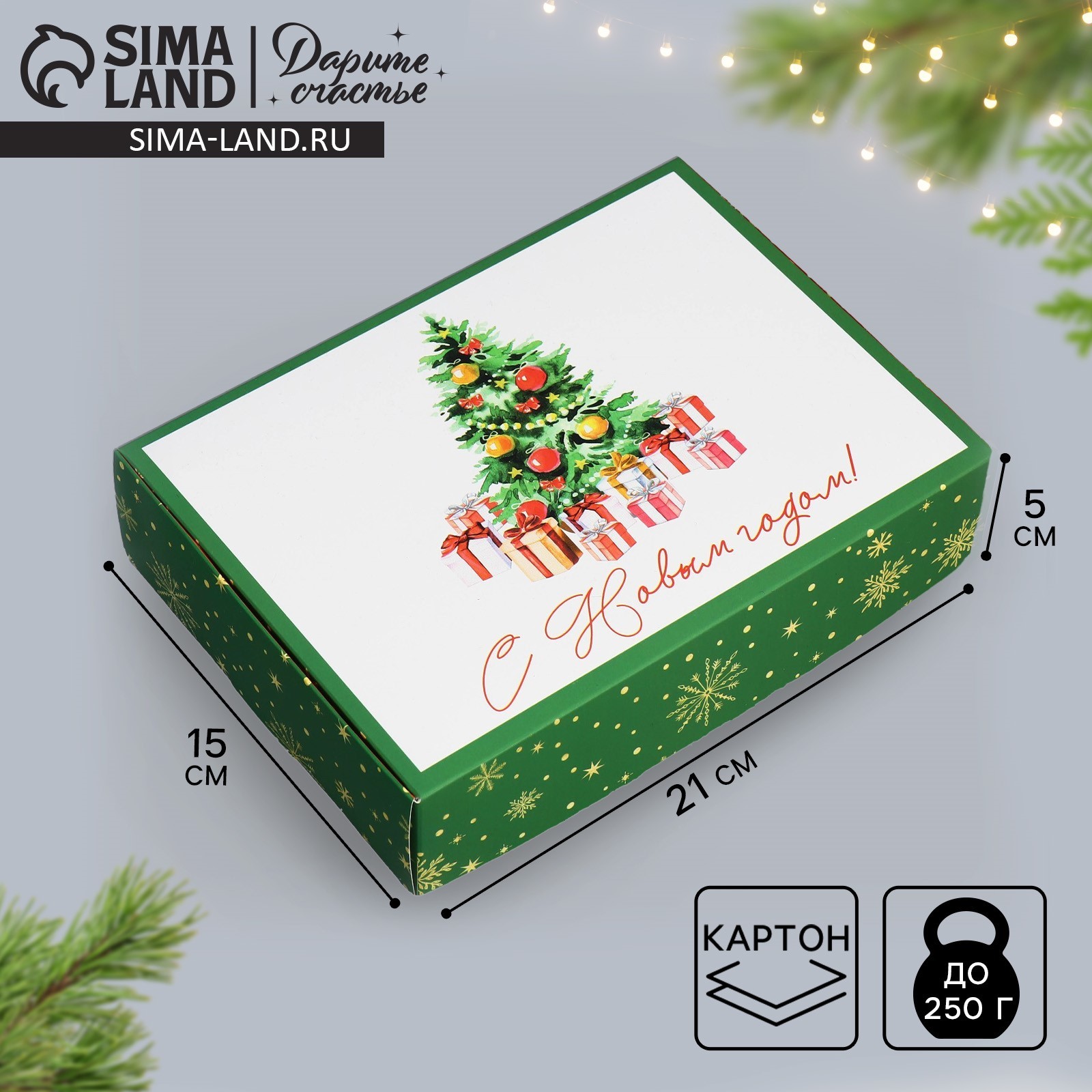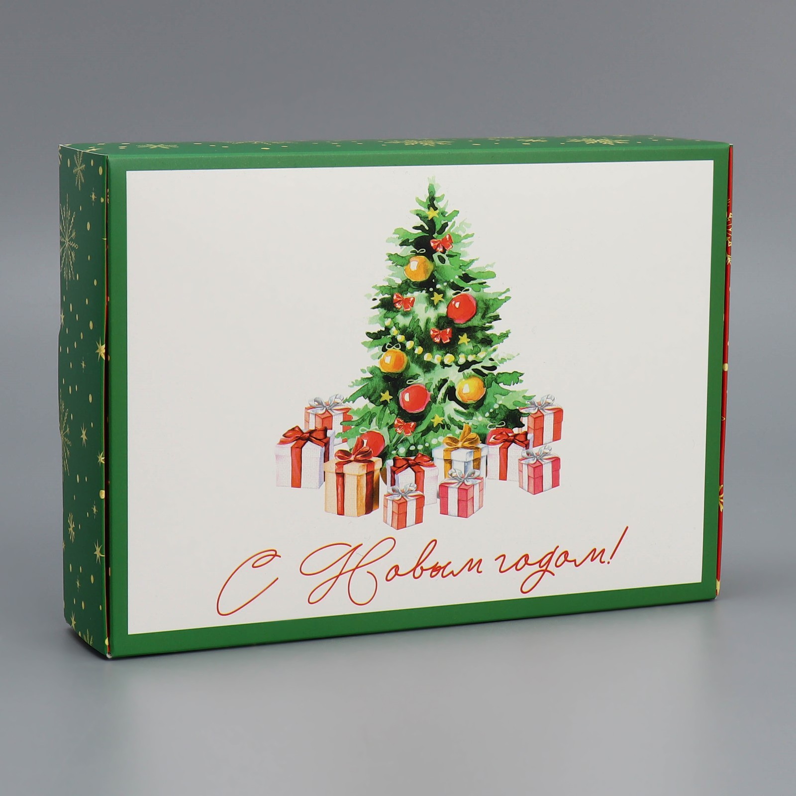 Коробка подарочная новогодняя складная «с новым годом!», ёлочка, 21 х 15 х 5 см. Цвет:Белый|Цвет:Красный|Цвет:Зелёный|Форма:Прямоугольная|Плотность, г/м :250|Длина, см:21|Ширина, см:15|Высота, см:5|Допустимый вес вложения, г:250|Тематика:Новогодняя|Символ года:Нет|Тематика праздника:Новый год|Материал:Картон|Вид:Складные коробки|Размер:Средний (18-24 см)|Окошко:Нет|Крышка-дно:Нет|Страна:Китай  развернуть описание ▼