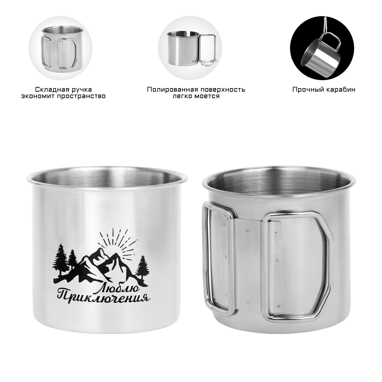 Термокружка, 250 мл, горы "мастер к. люблю приключения", складная ручка, 7 х 7.5 см