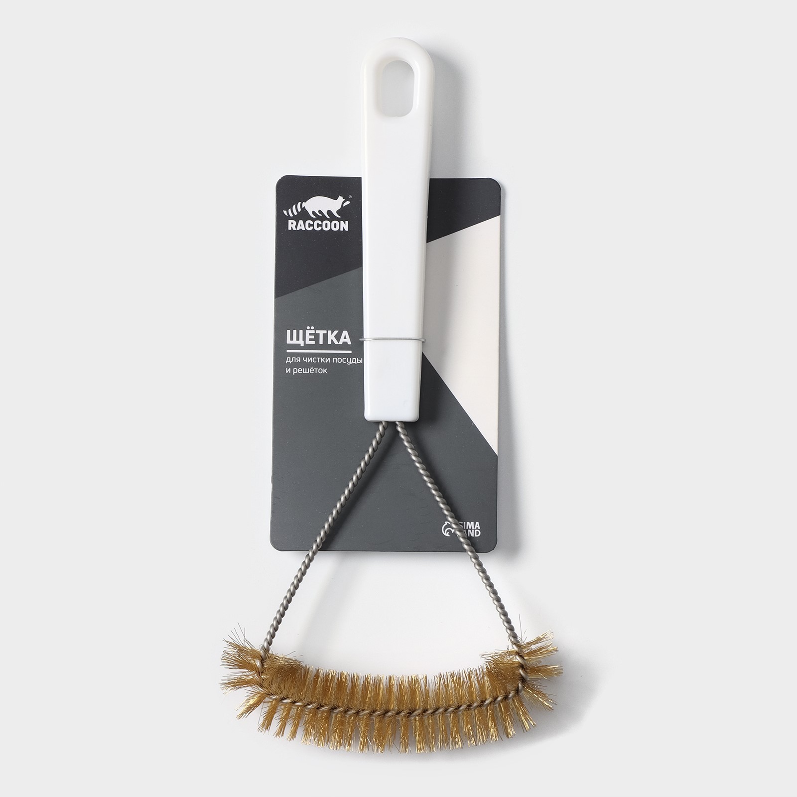 Щётка для чистки посуды и решёток-гриль raccoon, металлической щетина, 23,5x11 см, цвет белый. Чтобы поддерживать решётки гриль в хорошем состоянии, необходимо тщательно очищать их от остатков еды. Используйте щётку для чистки решёток гриль. Кроме того, с помощью этой щётки вы сможете очищать решётки на плитах, стыки и швы на кафельной плитке и другие труднодоступные места. Цвет: Белый parts count: 0 tnved: 9603909100 Материал колодки: Пластик Материал щетины щётки: Металл  развернуть описание ▼