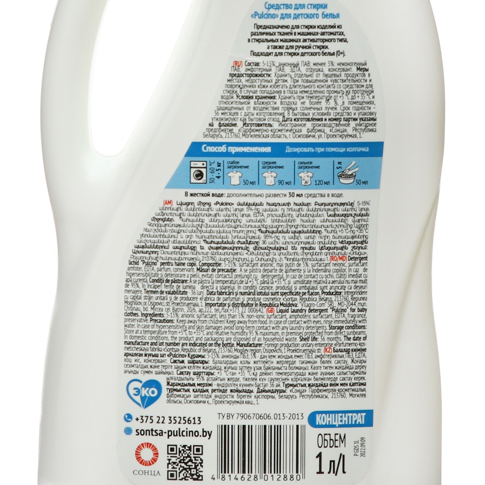 Жидкое средство для стирки Pulcino для детского белья 0+, 1 л