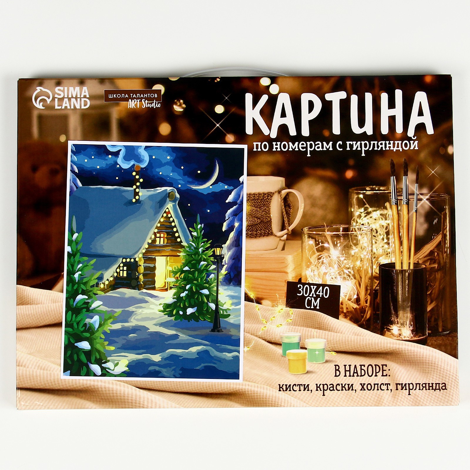 Картина по номерам с подрамником и гирляндой «новый год! уютный вечер», 30 х 40 см. Раскрашивание по номерам покорило сердца миллионов людей по всему миру, ведь с ним каждый может создать шедевр! Присоединяйтесь к этому увлекательному занятию, творите и наслаждайтесь результатами. Особенности набора Холст разделён на множество мелких фрагментов, на каждом указано число, соответствующее цвету, которым нужно закрасить данный участок.В набор входят все необходимые оттенки красок. Баночки пронумерованы.Поначалу, когда вы только возьмёте холст в руки, будет сложно представить, что получится в итоге. Но, уверяем вас, результат превзойдёт все ожидания. Полотно с множеством оттенков, теней и красок будет выглядеть так, словно оно из музея.Для кого:Унисекс|Размер, см:30 х 40|Возраст:Для взрослых|Тематика:Новогодняя|Символ года:Нет|Тематика праздника:Новый год|Ориентация изображения:Вертикально|Вид:Холст под роспись|Темпер. ограничение НЕ НИЖЕ :-10|Уровень сложности:Сложный|Комплектация набора:С кисточками|Комплектация набора:С гирляндой|Комплектация набора:С красками|Страна:Китай  развернуть описание ▼