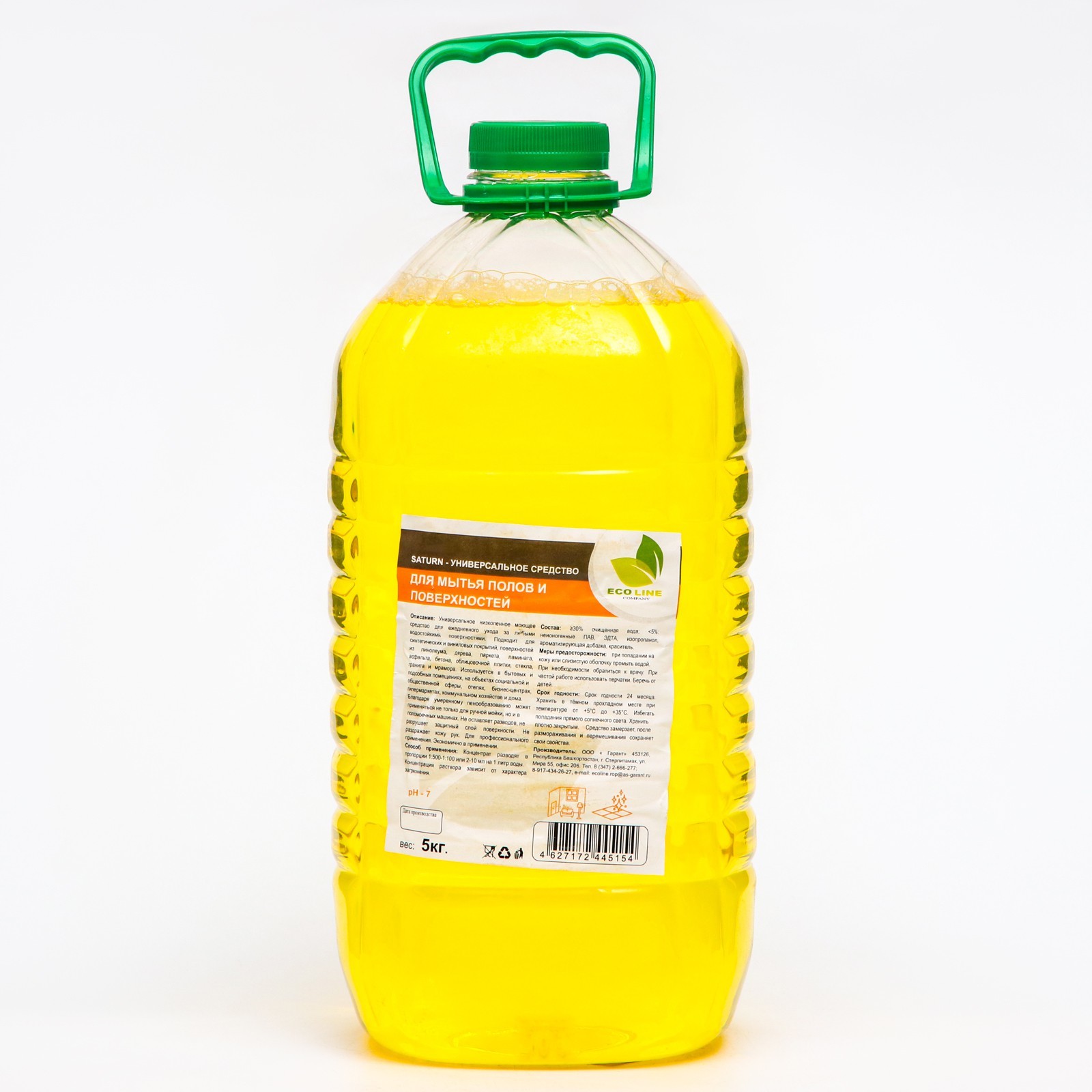 Универсальное низкопенное моющее средство "saturn", 5 кг. Универсальное низкопенное моющее средство для ежедневного ухода за любыми моющимися поверхностями. Подходит для синтетических и виниловых покрытий, поверхностей из линолеума, дерева, паркета, ламината, асфальта, бетона, облицовочной плитки, стекла, гранита и мрамора. Используется в бытовых и подсобных помещениях, на обьектах социальной и общественной сферы, отелях, бизнес-центрах, гипермаркетах, коммунальном хозяйстве и дома. Благодаря умеренному пенообразованию может применяться не только для ручной мойки, но и в поломоечных машинах, моющих пылесосах. Не требует смывания, не оставляет разводов, не разрушает защитный слой поверхности. Не раздражает кожу рук. Способ применения: Концентрат разводят в пропорции 1:500-1:100 или 2-10 мл на 1 литр воды. Концентрация раствора зависит от характера загрязнения. Состав: см. на упаковке. parts count: 0 Вес, г/Объём, мл: 5000 Температурное ограничение: Нет  развернуть описание ▼