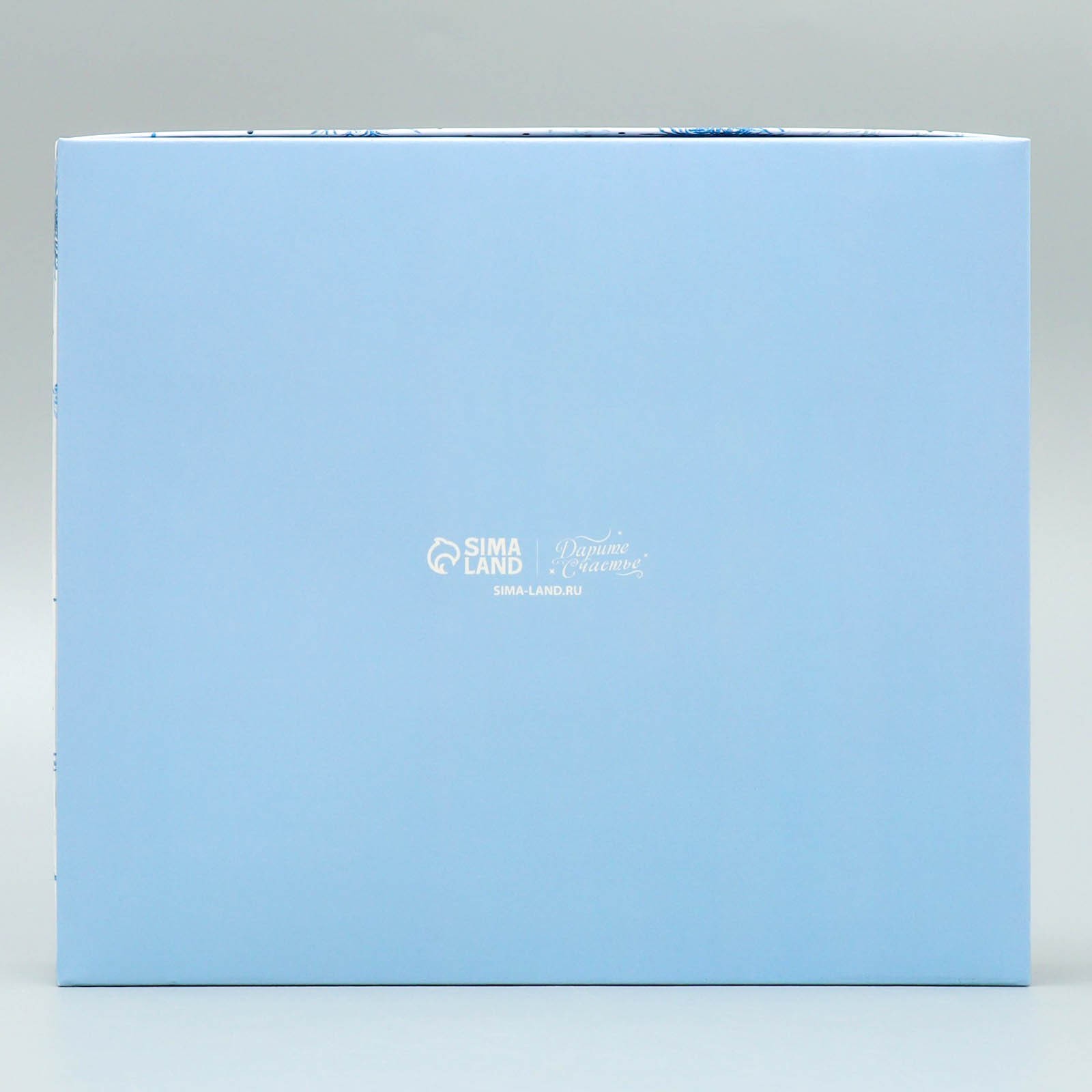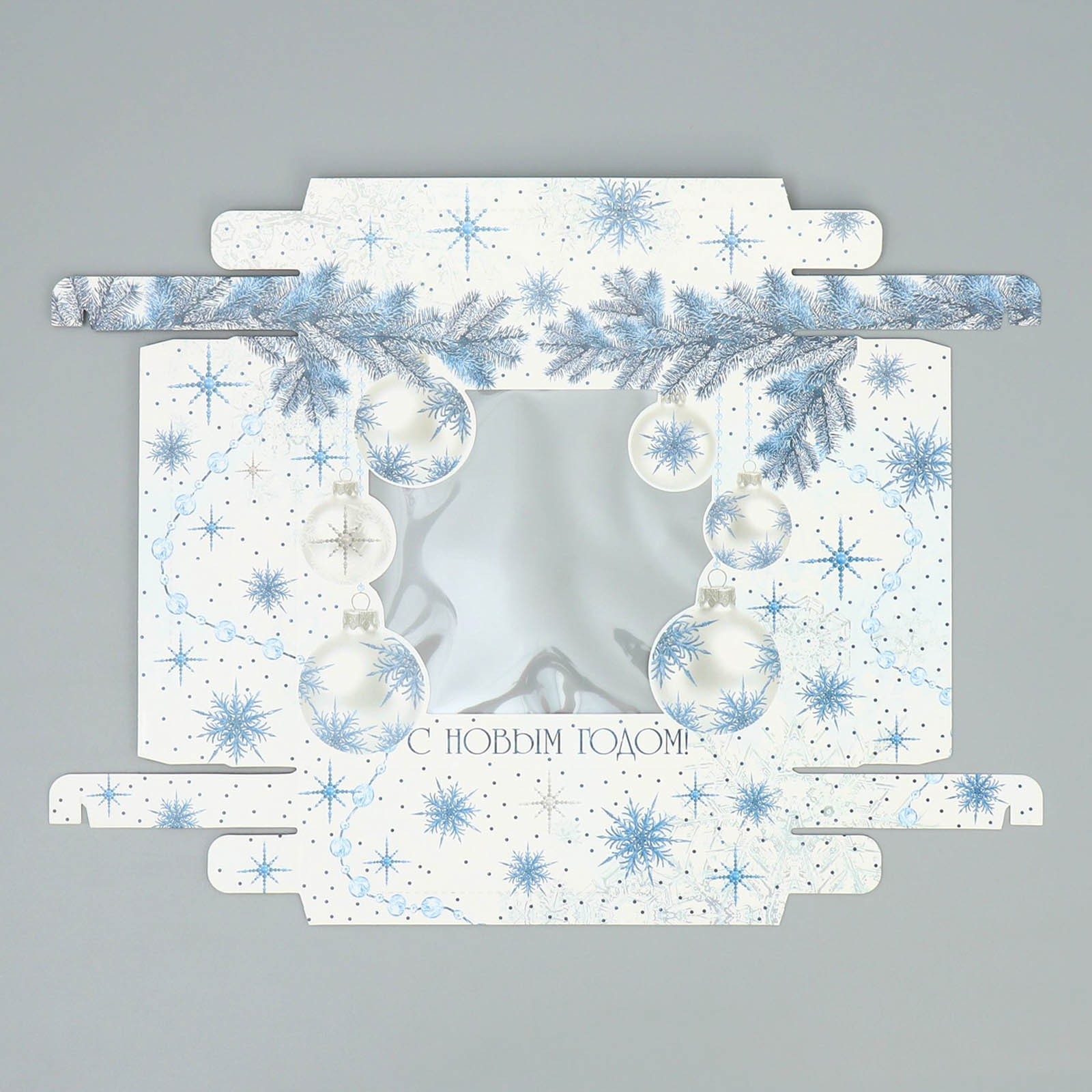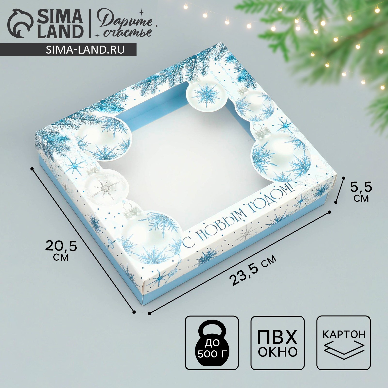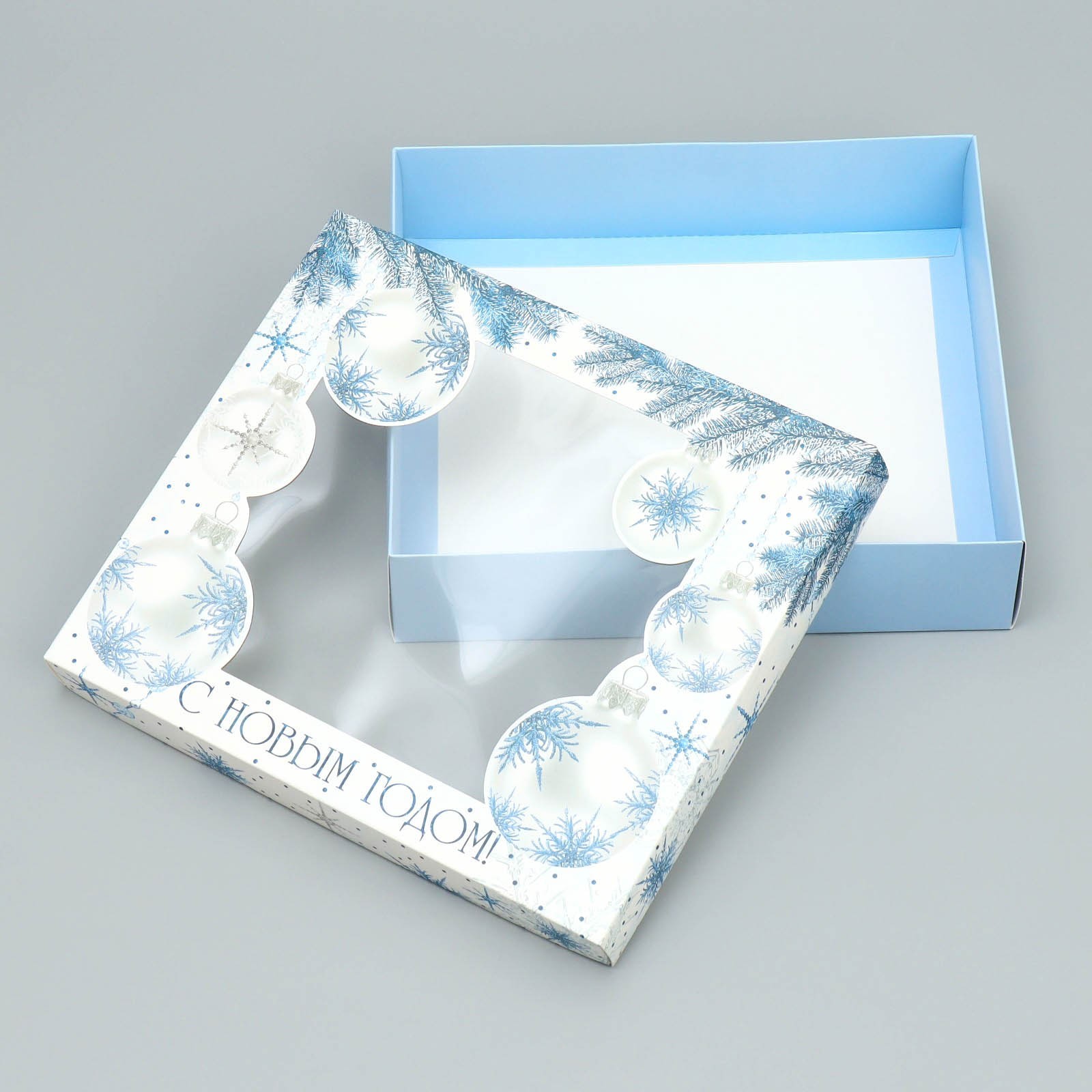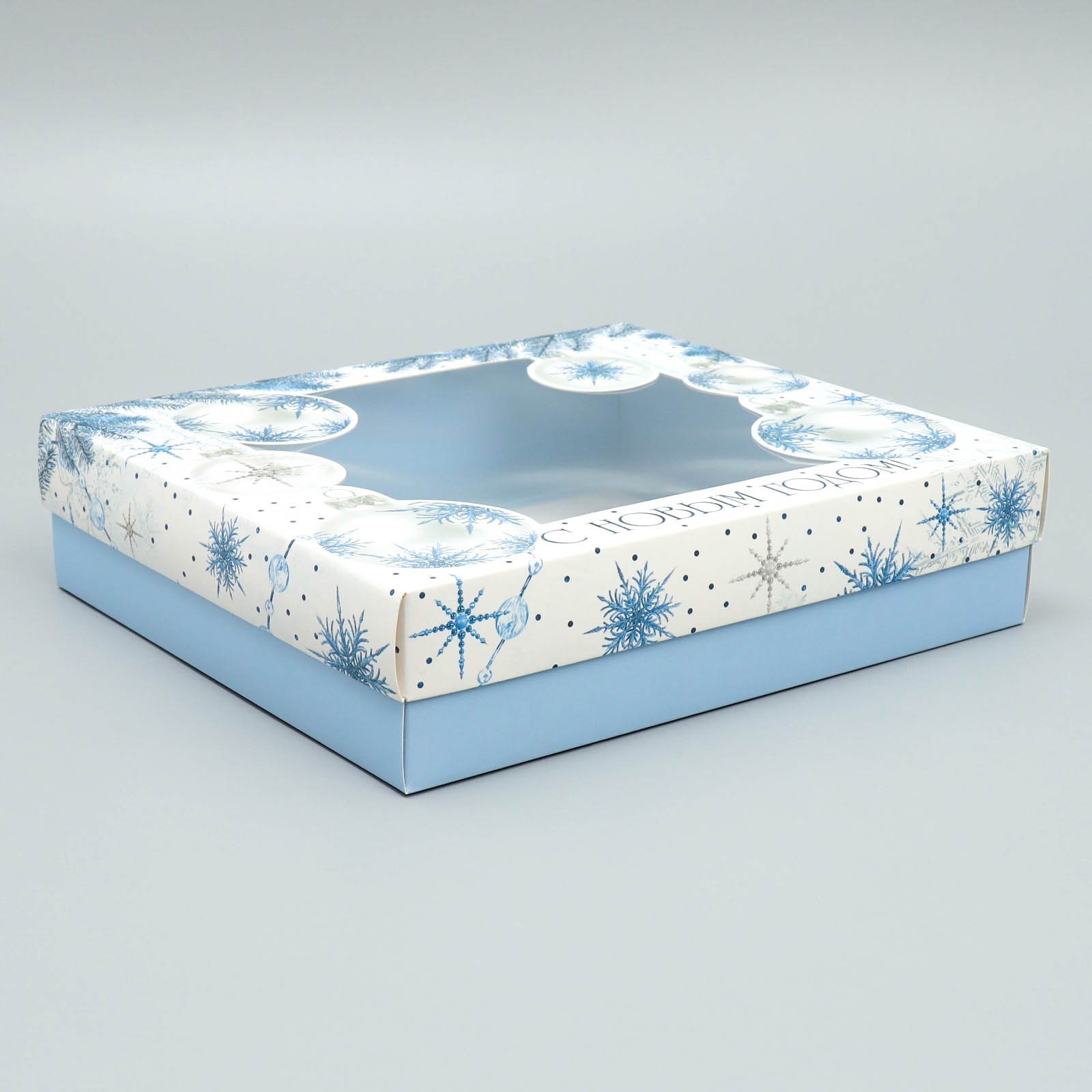 Коробка подарочная новогодняя складная «с новым годом», 23.5 х 20.5 х 5.5 см. Цвет:Голубой|Цвет:Белый|Форма:Прямоугольная|Плотность, г/м :250|Длина, см:23.5|Ширина, см:20.5|Высота, см:5.5|Допустимый вес вложения, г:500|Тематика:Новогодняя|Символ года:Нет|Тематика праздника:Новый год|Материал:Картон|Вид:Складные коробки|Размер:Средний (18-24 см)|Окошко:Да|Крышка-дно:Да|Страна:Китай  развернуть описание ▼