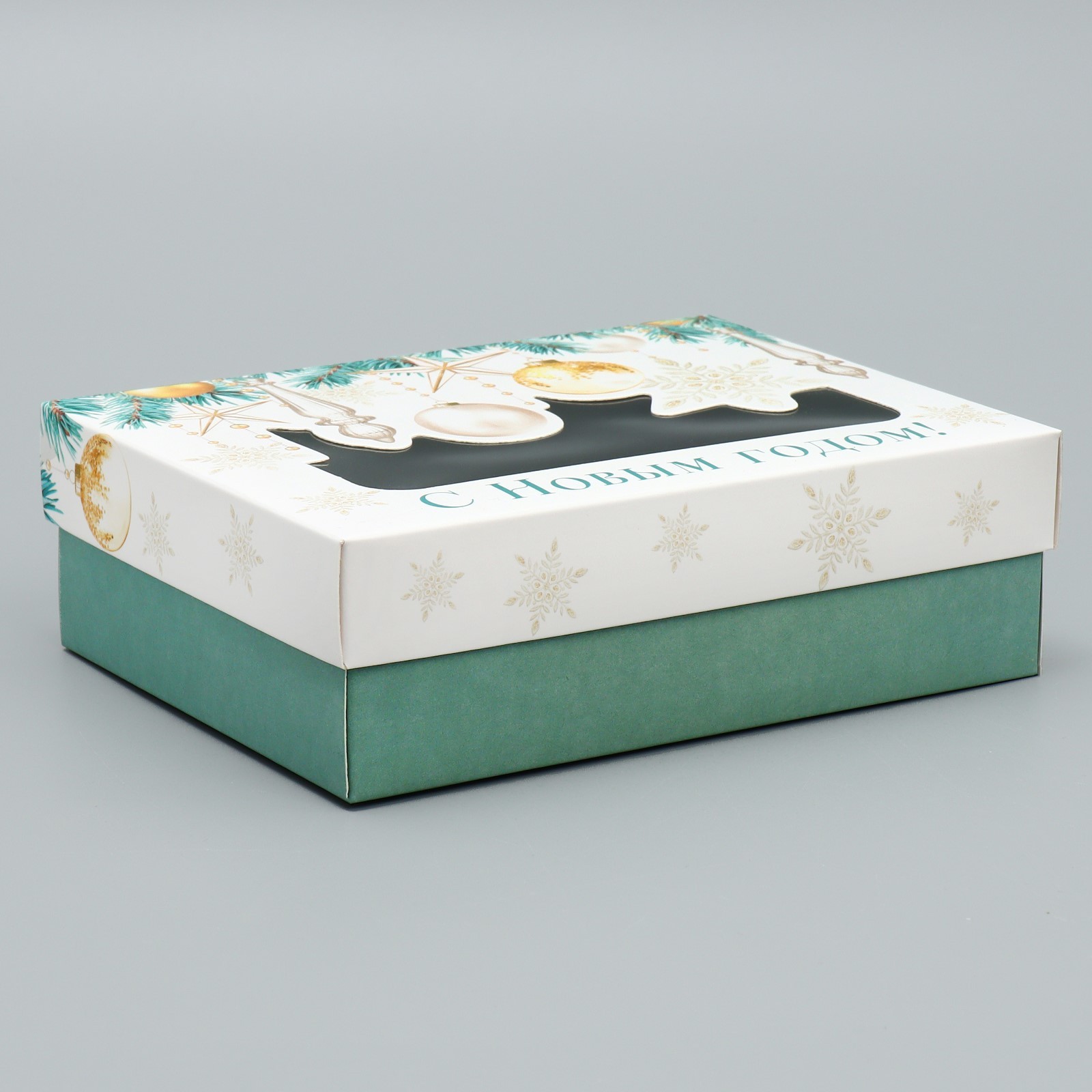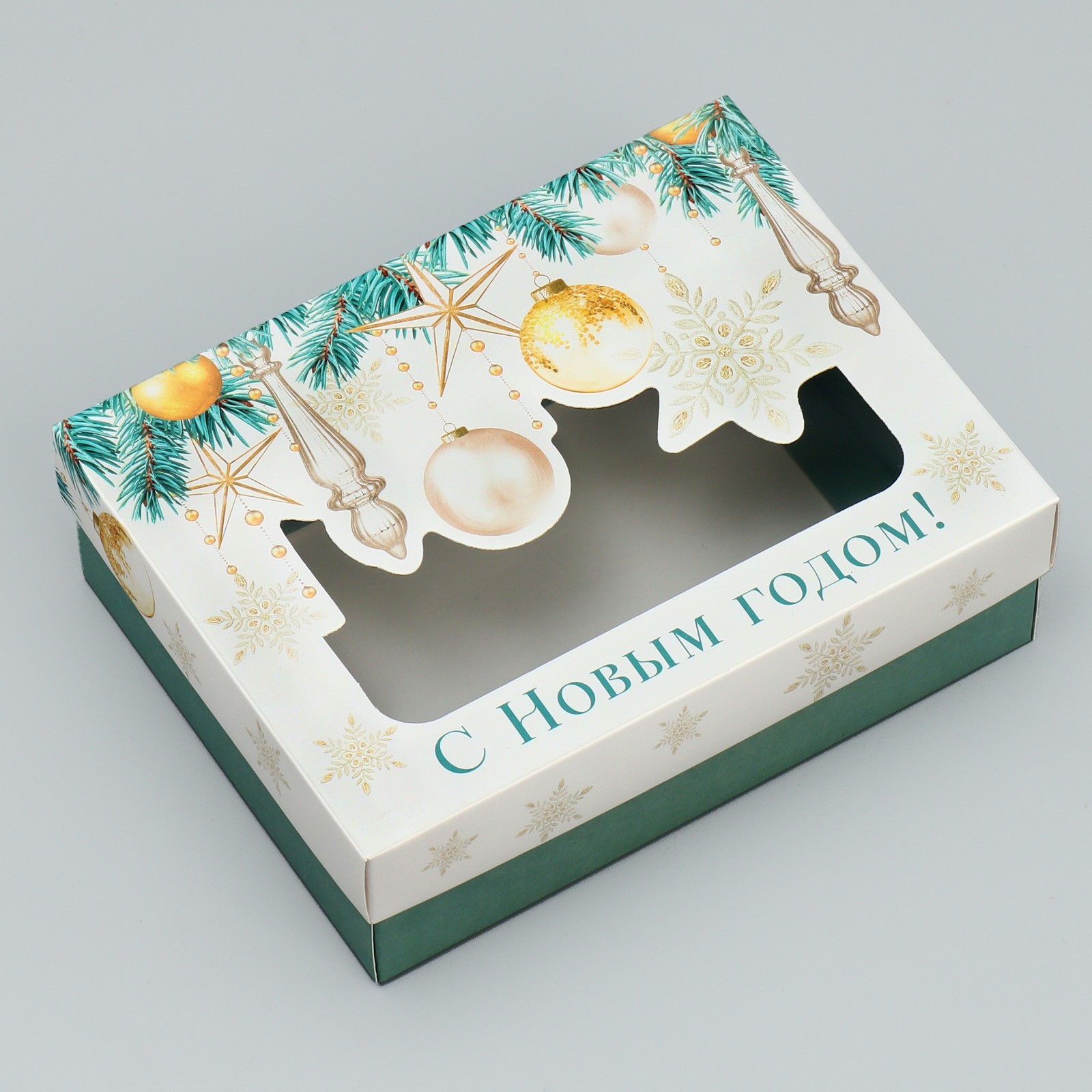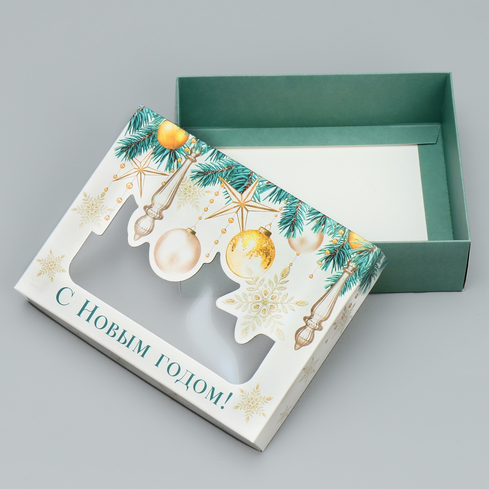 Коробка подарочная новогодняя складная «с новым годом!», 16.5 х 12.5 х 5 см. Цвет:Золотистый|Цвет:Зелёный|Цвет:Белый|Форма:Прямоугольная|Плотность, г/м :250|Длина, см:16.5|Ширина, см:12.5|Высота, см:5|Допустимый вес вложения, г:200|Тематика:Новогодняя|Символ года:Нет|Тематика праздника:Новый год|Материал:Картон|Вид:Складные коробки|Размер:Малый (11-17 см)|Окошко:Да|Крышка-дно:Да|Страна:Китай  развернуть описание ▼