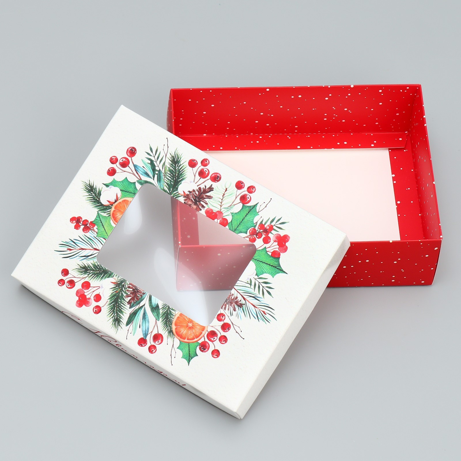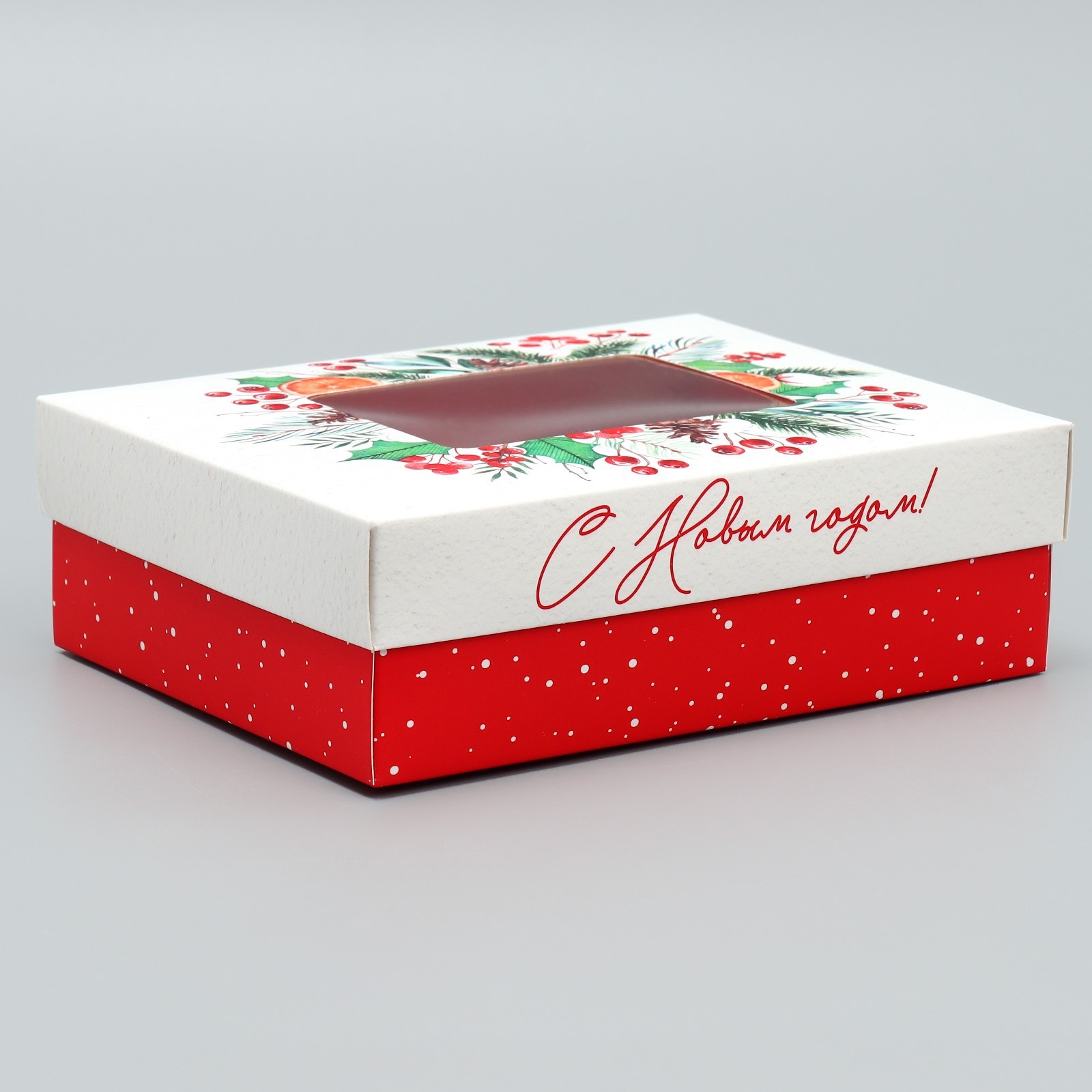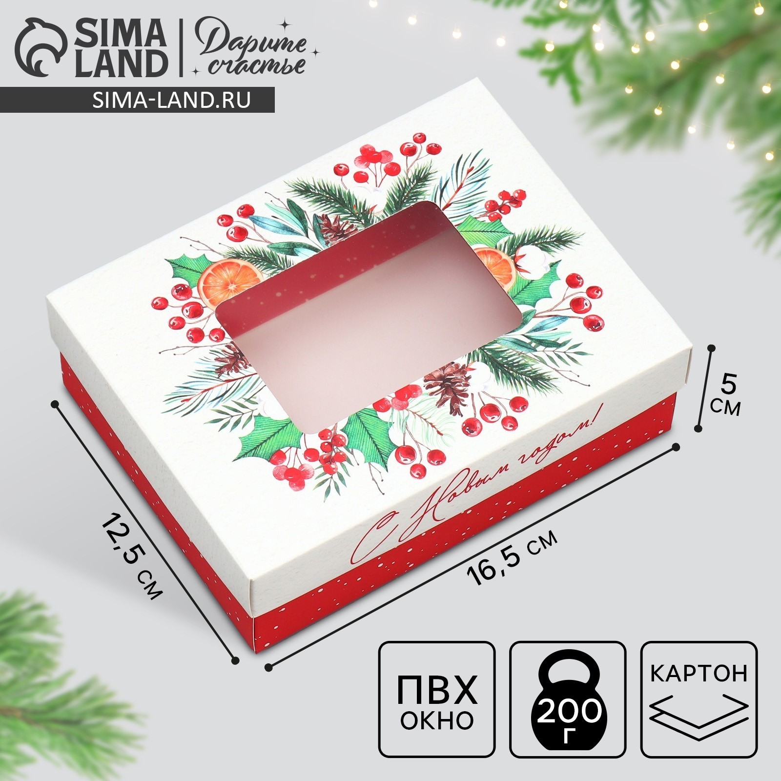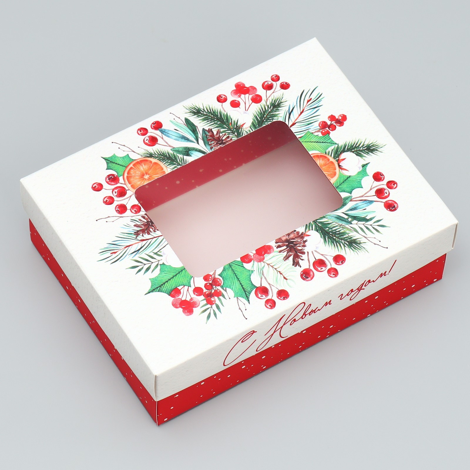 Коробка подарочная новогодняя складная «с новым годом», 16.5 х 12.5 х 5 см. Цвет:Зелёный|Цвет:Белый|Цвет:Красный|Форма:Прямоугольная|Плотность, г/м :250|Длина, см:16.5|Ширина, см:12.5|Высота, см:5|Допустимый вес вложения, г:200|Тематика:Новогодняя|Символ года:Нет|Тематика праздника:Новый год|Материал:Картон|Вид:Складные коробки|Размер:Малый (11-17 см)|Окошко:Да|Крышка-дно:Да|Страна:Китай  развернуть описание ▼