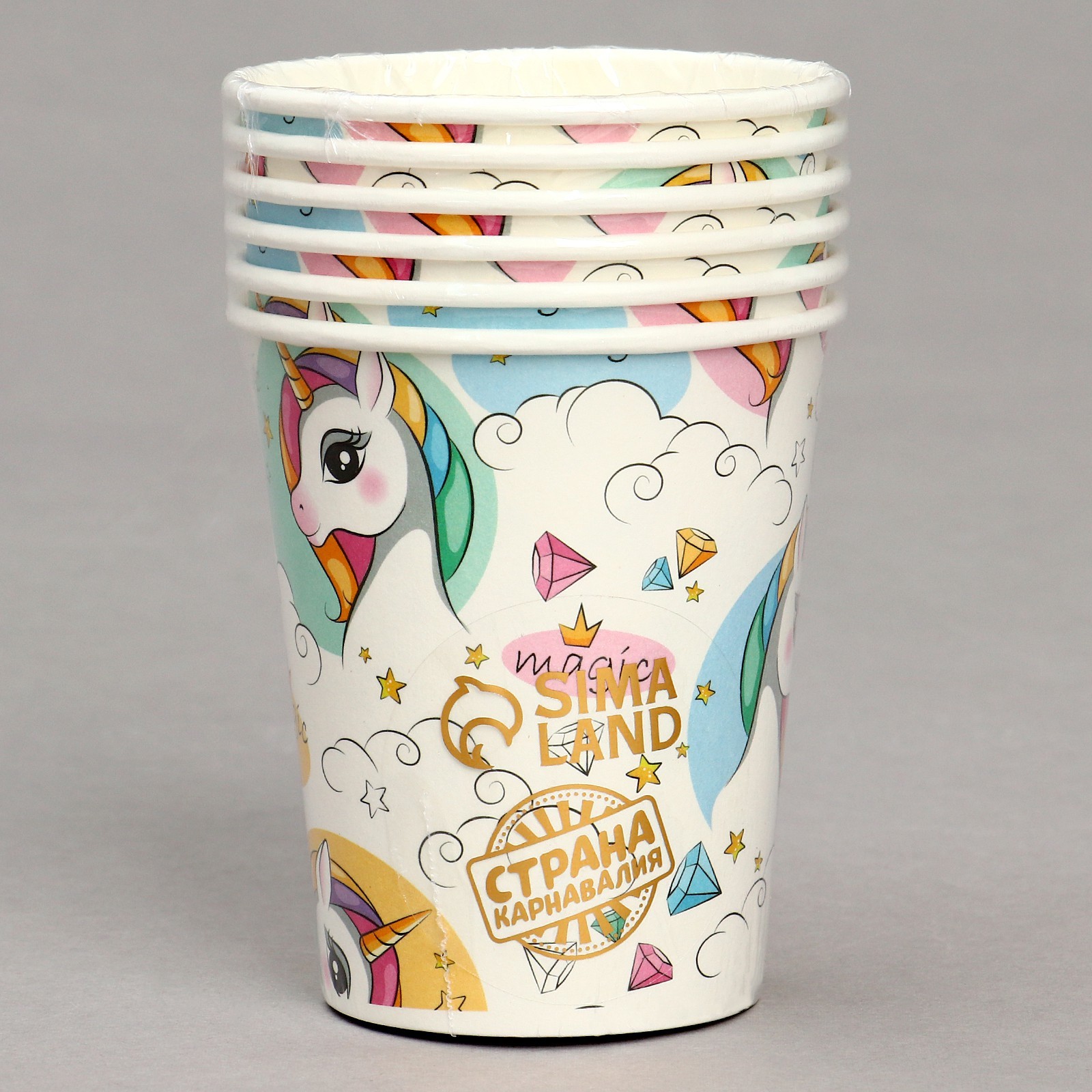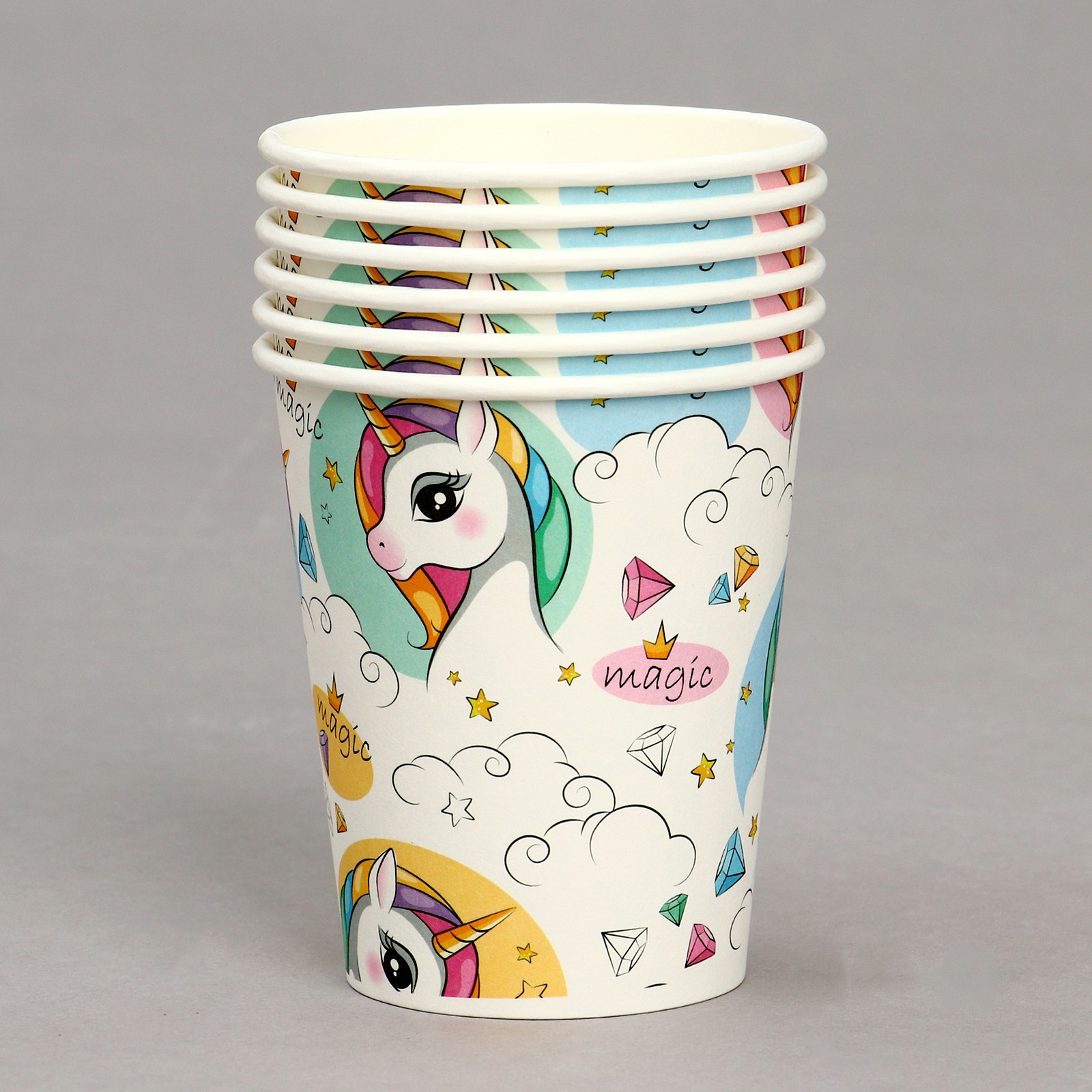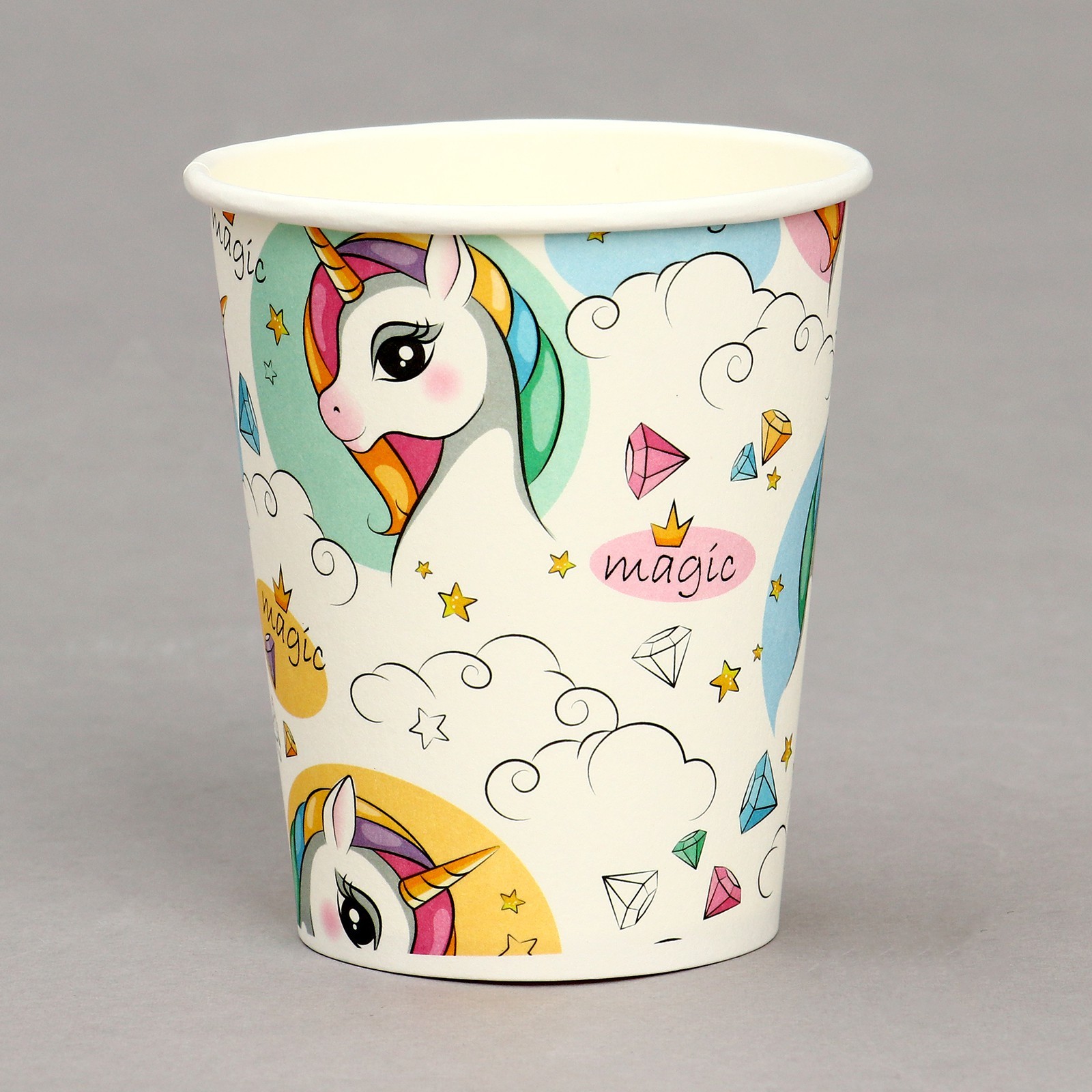Стакан бумажный «единорог», в наборе 6 шт.. Посуда изготовлена из высококачественной бумаги без добавления поликарбоната, меламина и поливинилхлорида. Такие изделия безопасны, они не «раскисают» при взаимодействиями с продуктами питания. Преимущества бумажной посудыЭкологически безвредна: полностью разлагается в естественной среде. Гигиеничность и безопасность: при изготовлении используется первичный и вторичный картон с ламинацией, крафт-бумага и пищевые красители. Выдерживает высокую и низкую температуру. Сохраняет вкус еды и напитков, не выделяя вредных веществ, при нагреве. Тарелки и стаканы из бумаги приятнее на ощупь, чем аналогичная посуда из пластика. Такую посуду не надо мыть и невозможно разбить. Где применяется бумажная посуда:детские заведения и мероприятия, организация питание на свежем воздухе, точки продажи фастфуда, летние кафе и бистро, вендинг и офисы, доставка обедов. Цвет: Разноцветный Диаметр, см: 7.5 Количество слоёв: 1 В наборе, шт.: 6 Объём, мл: 250 Материал: Бумага Вид: Стакан  развернуть описание ▼