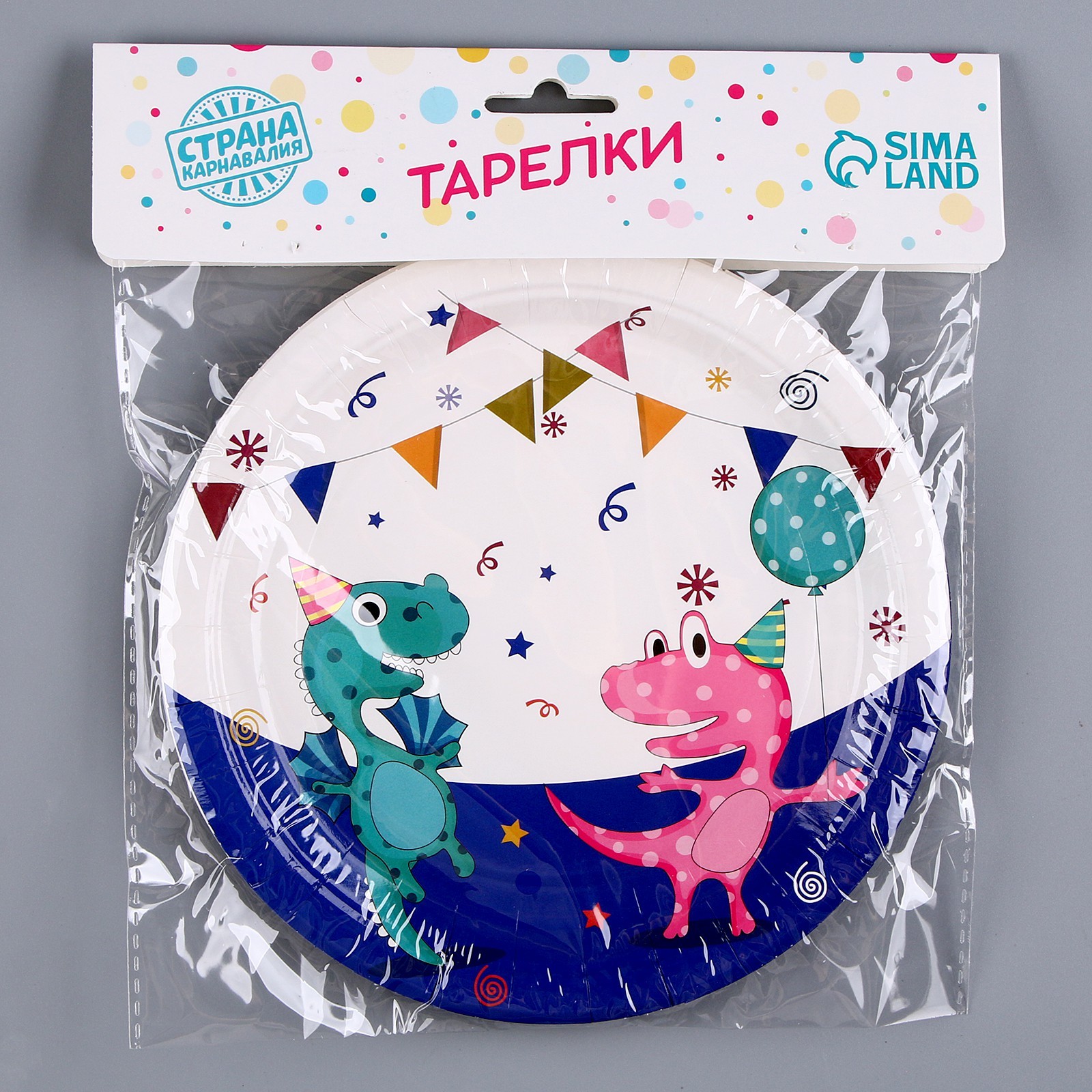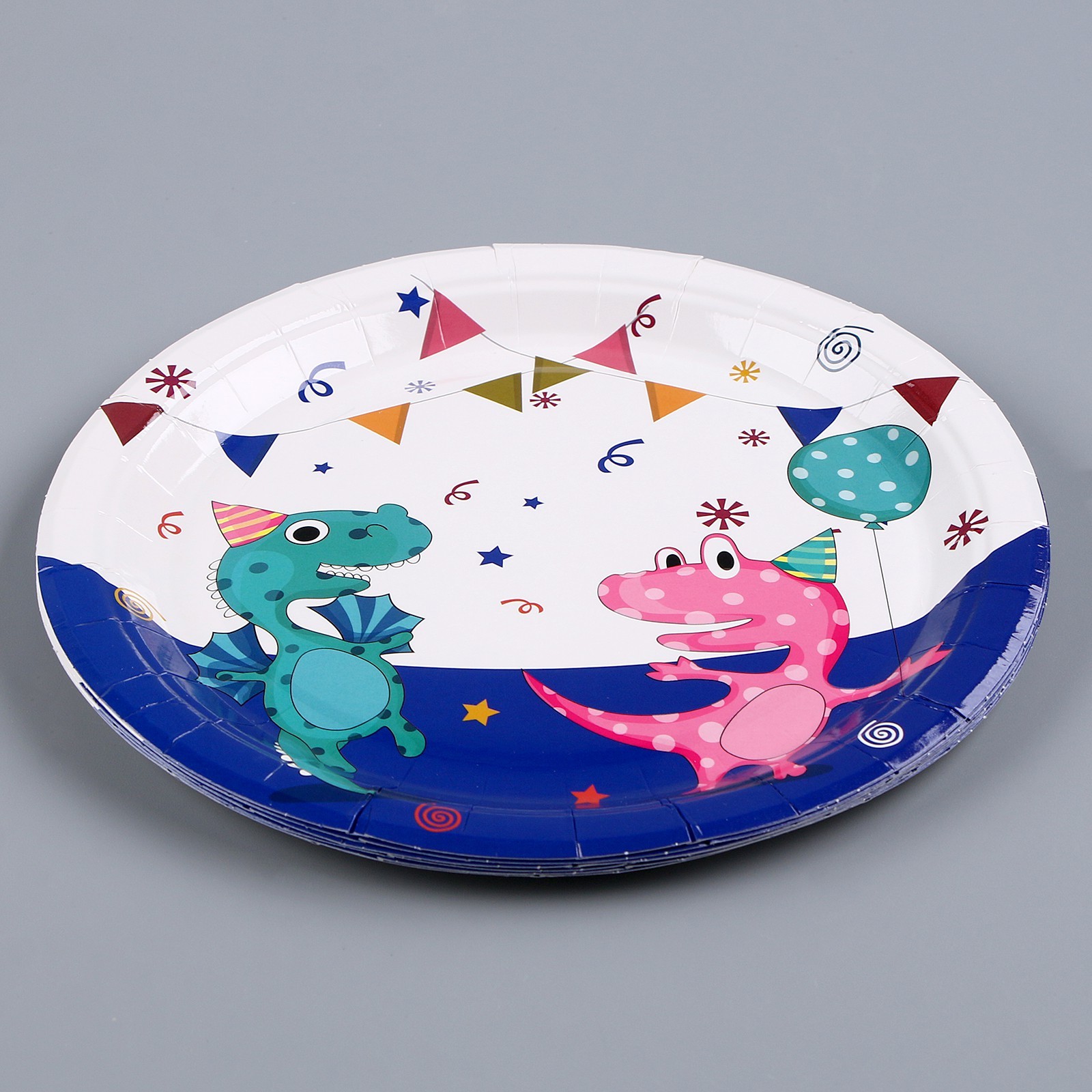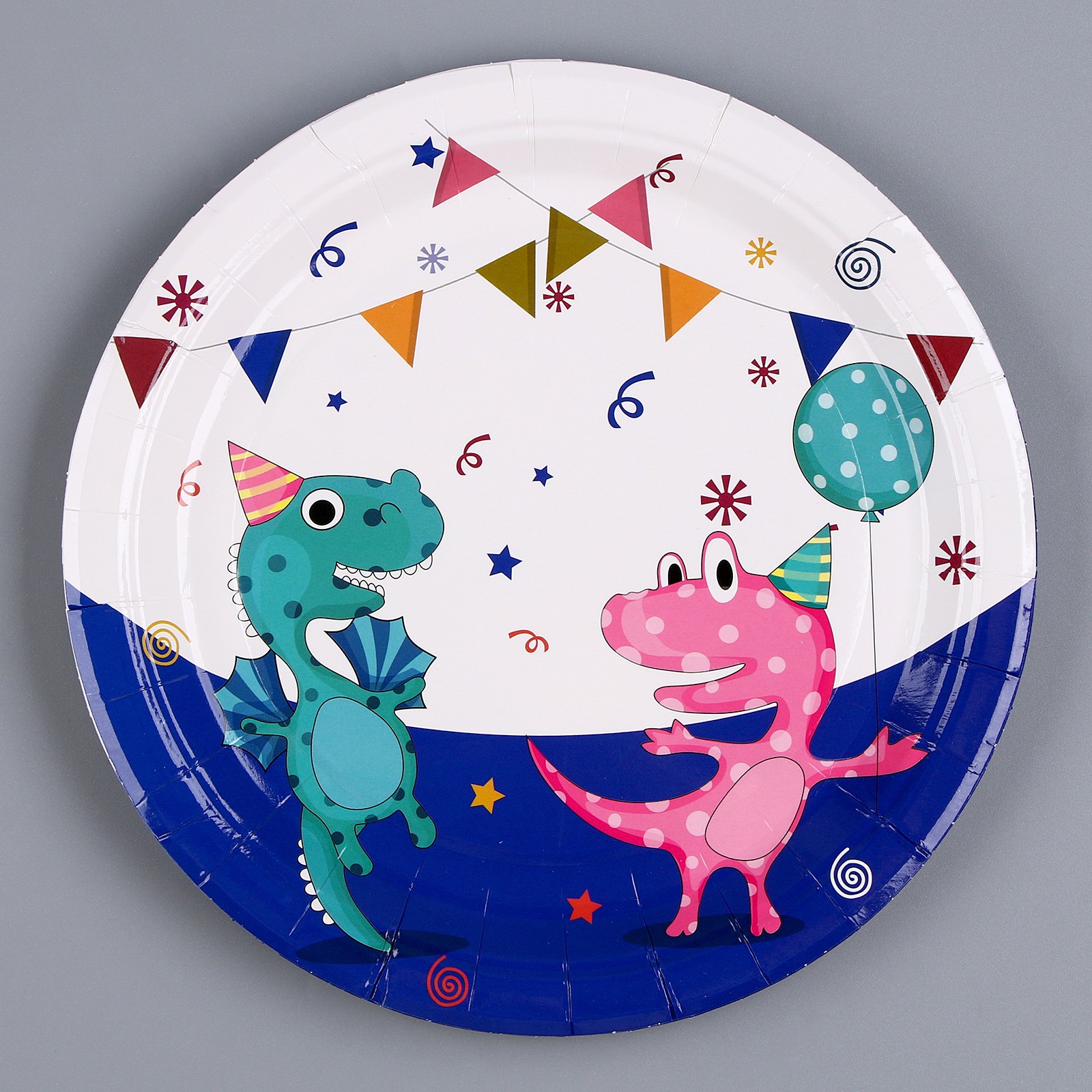 Тарелка бумажная «счастливые динозаврики», в наборе 6 шт.