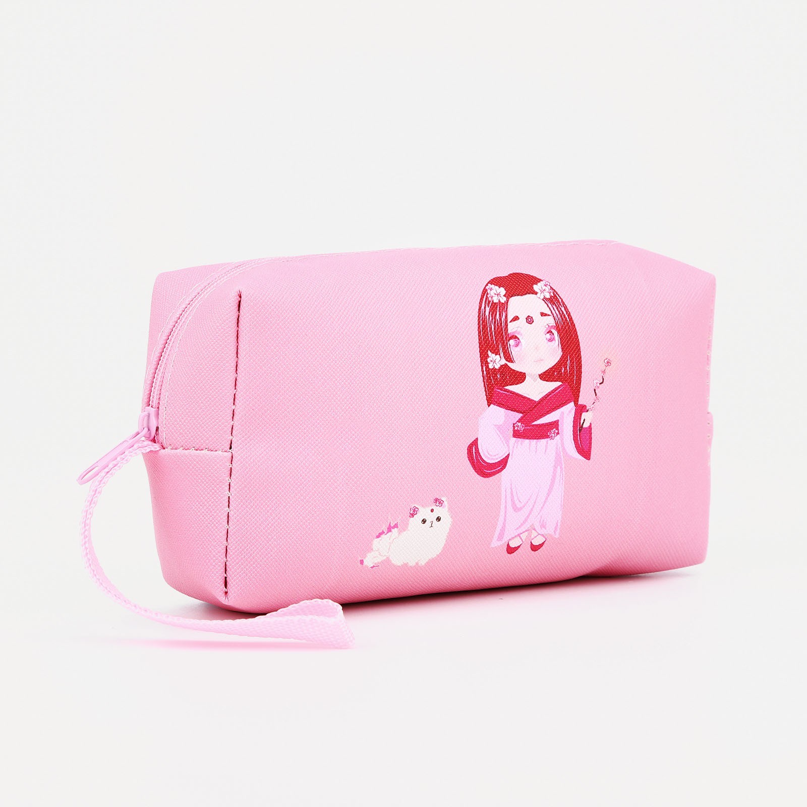 Косметичка на молнии, с ручкой, цвет розовый