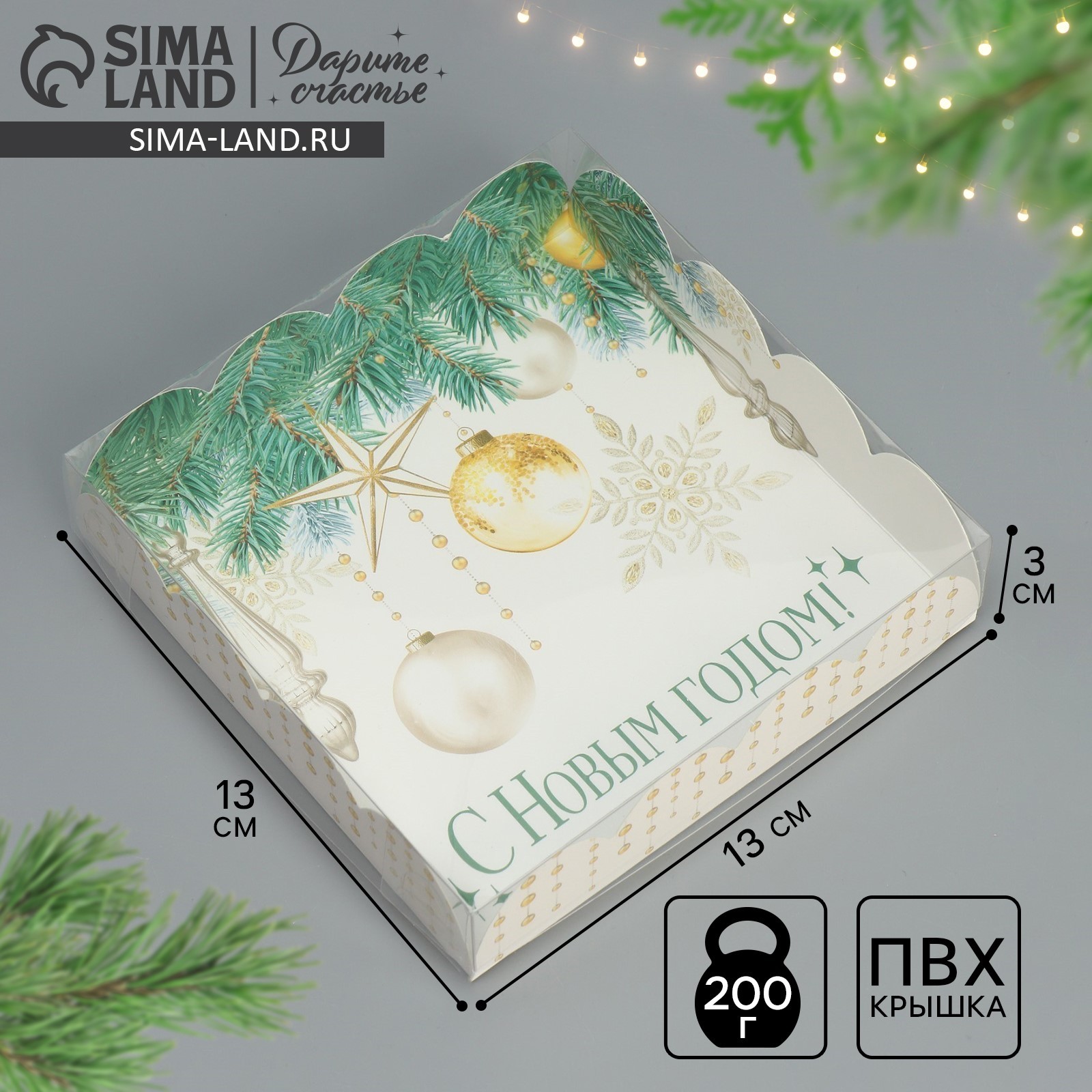 Коробка для кондитерских изделий с пластиковой крышкой «с новым годом!», 13 х 13 х 3 см. Цвет:Золотистый|Цвет:Зелёный|Цвет:Белый|Форма:Квадратная|Плотность, г/м :280|Длина, см:13|Ширина, см:13|Высота, см:3|Тематика праздника:Новый год|Материал:Картон|Страна:Китай  развернуть описание ▼