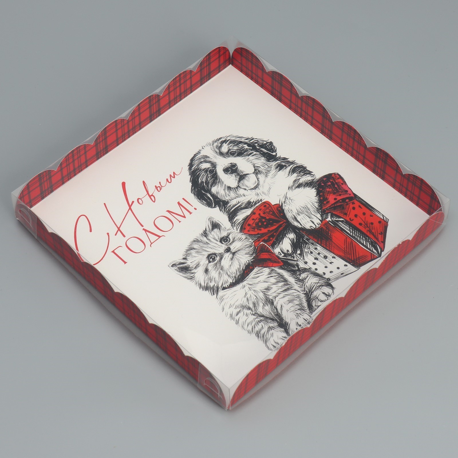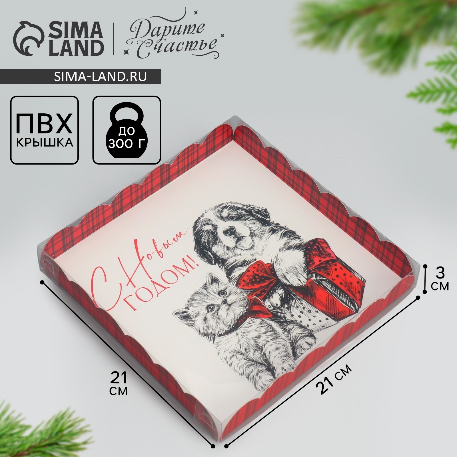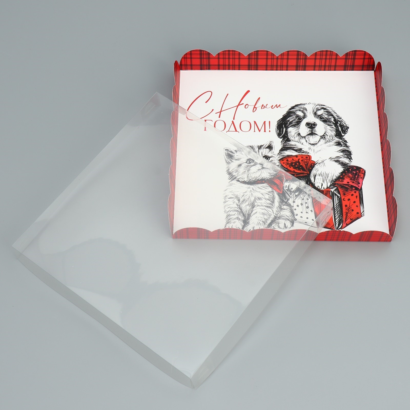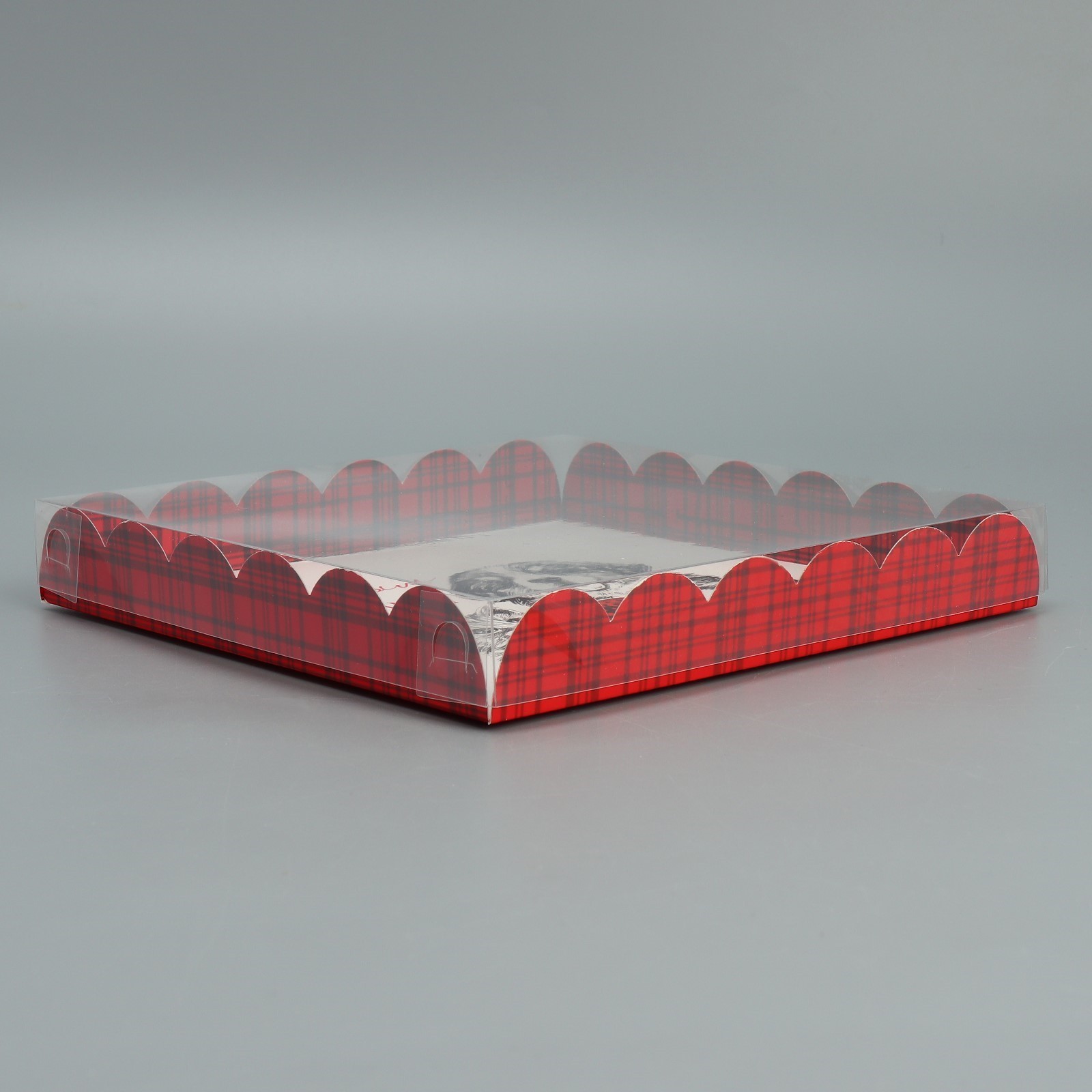 Коробка для кондитерских изделий с пластиковой крышкой «с новым годом!», 21 х 21 х 3 см. Цвет:Белый|Цвет:Красный|Цвет:Чёрный|Форма:Квадратная|Плотность, г/м :280|Длина, см:21|Ширина, см:21|Высота, см:3|Тематика праздника:Новый год|Материал:Картон|Страна:Китай  развернуть описание ▼