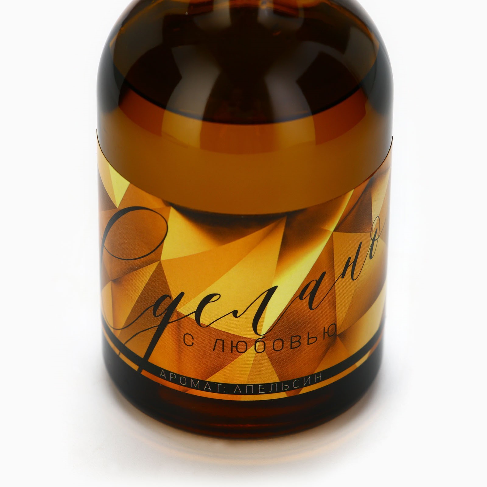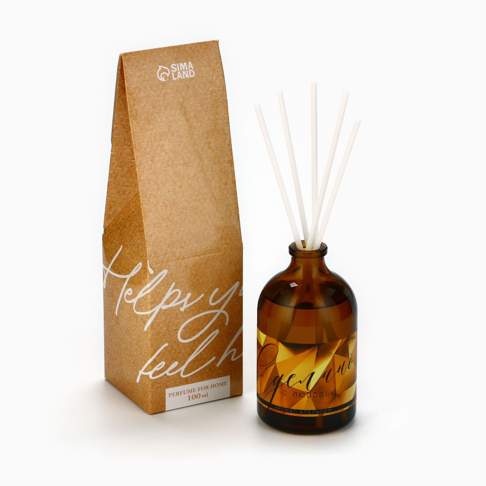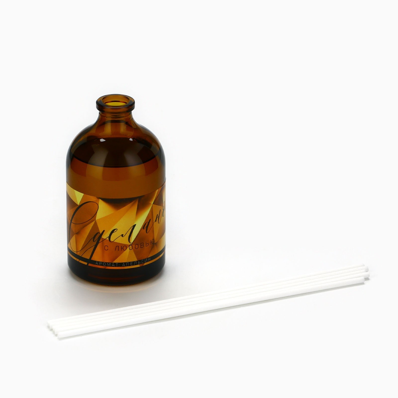 Диффузор ароматический «сделано с любовью»,аромат апельсин, 100 мл.. Ароматический диффузор «Сделано с любовью» с ароматом апельсина - это прекрасный способ создать уютную и романтическую атмосферу в вашем доме. Диффузор выполнен из качественных материалов: стекло, бумага, микрофибра, силикон, спирт, ароматизатор. Диффузор «Сделано с любовью» выполнен из качественных материалов, содержит 100 мл жидкости, которая наполняет комнату тонким и приятным ароматом апельсина. Палочки из микрофибры впитывают ароматизированную жидкость и распространяют ее в воздухе. Аромадиффузор находится в стильной упаковке, он станет отличным подарком для себя и близких. ПрименениеИзвлеките диффузор из упаковки, откройте крышку и защитный колпачок, опустите палочки в ароматизированную жидкость и наслаждайтесь. Ароматизированная жидкость пропитывает палочки, и с их помощью аромат распространяется по всему помещению. Объём, мл: 100 Вид ароматизатора: Диффузор Аромат: Апельсин  развернуть описание ▼