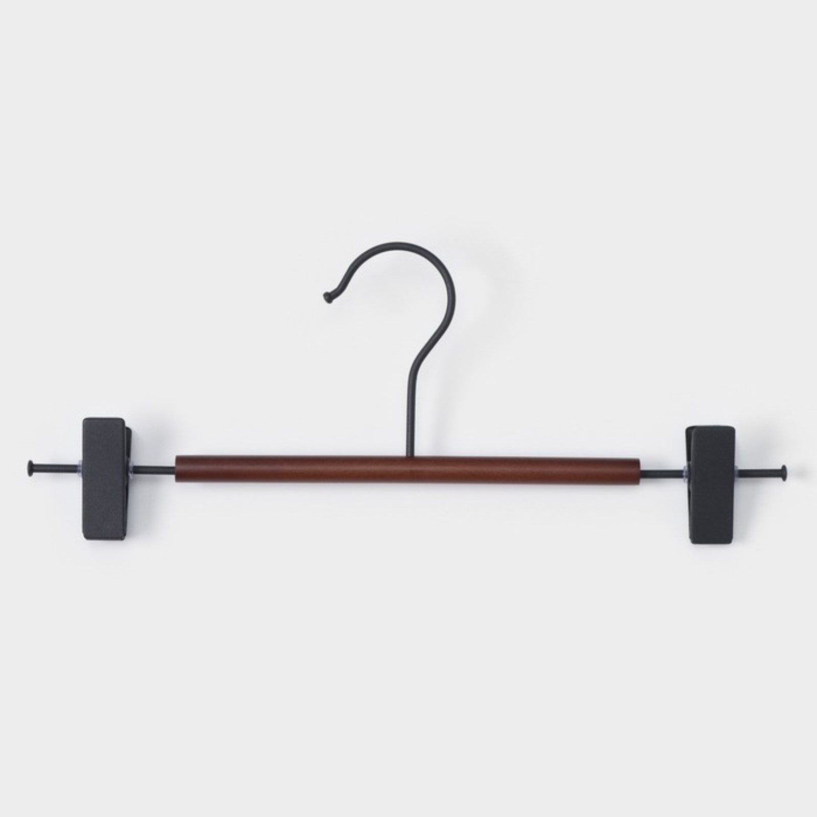 Array. Аккуратно отутюженные брюки и юбки говорят о человеке, что он опрятен и обладает чувством стиля. С другой стороны, мятая одежда производит противоположный эффект: окружающие воспринимают это как проявление внутренней небрежности. Если вам не нравится второй вариант, то вешалка для юбок и брюк — это именно то, что вам нужно! Вы забудете о неприятных ситуациях, когда отутюженная с вечера одежда падает с вешалки и утром выглядит крайне непривлекательно. Зажимы надёжно закрепят брюки, юбки и джинсы. Цвет: Коричневый Вид вешалки: Для юбок и брюк Возраст: Любой Материал: Металл Размер: 12 - 31 Поворотный крючок: Нет Многоуровневая: Нет Покрытие: Без покрытия  развернуть описание ▼