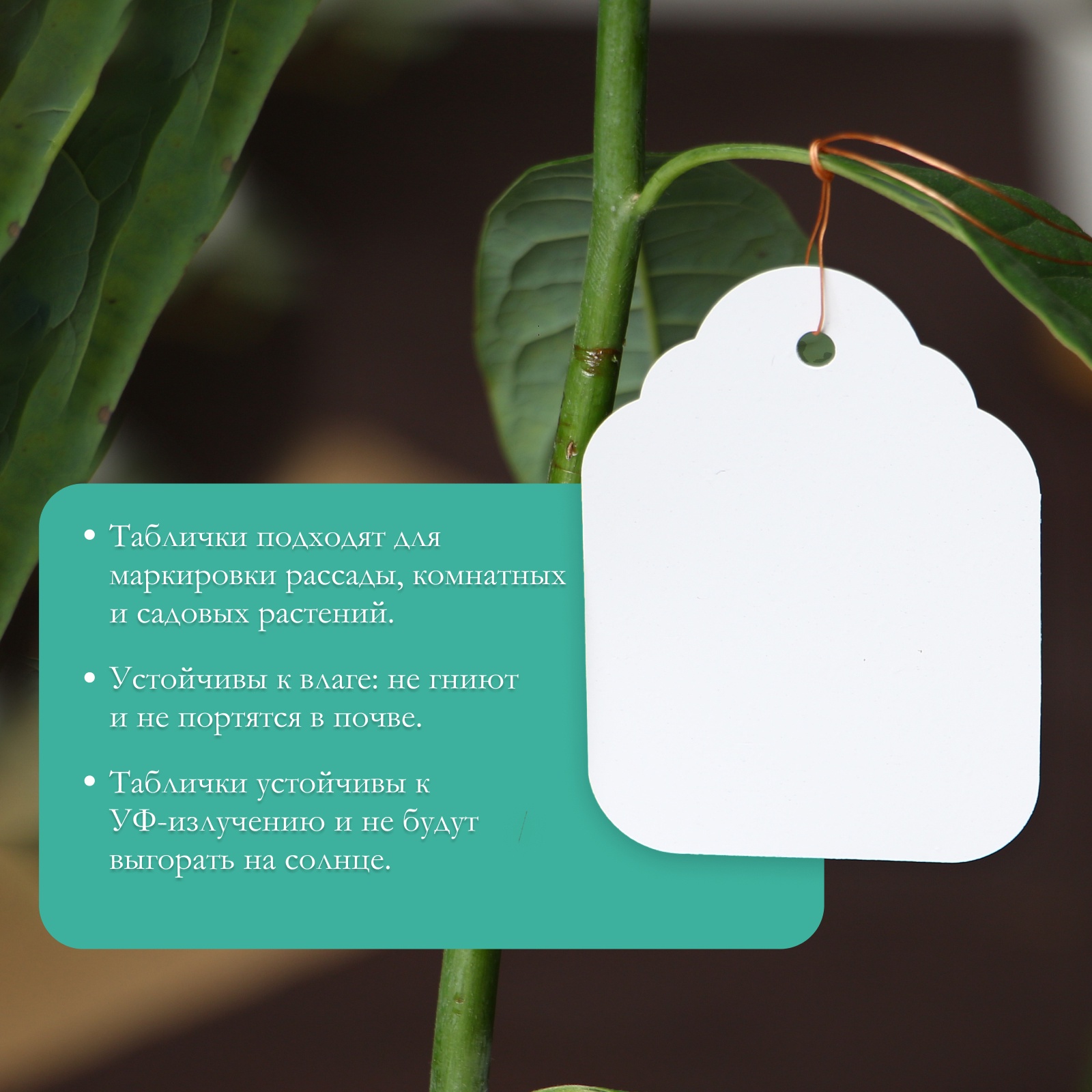 Бирки садовые, для маркировки растений, 6.5 5 см, набор 20 шт., пластик, белые, Greengo