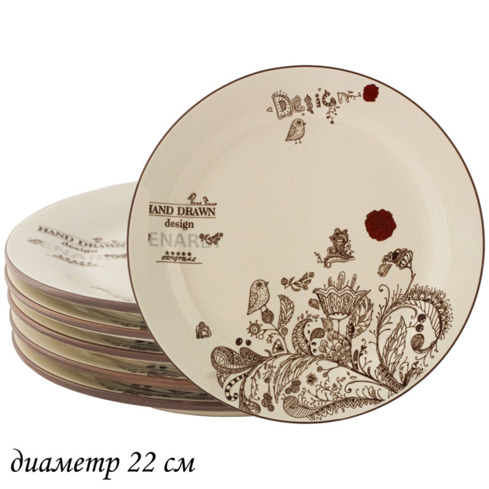 Набор тарелок Lenardi «птичий дворик», D=22 см, 6 шт