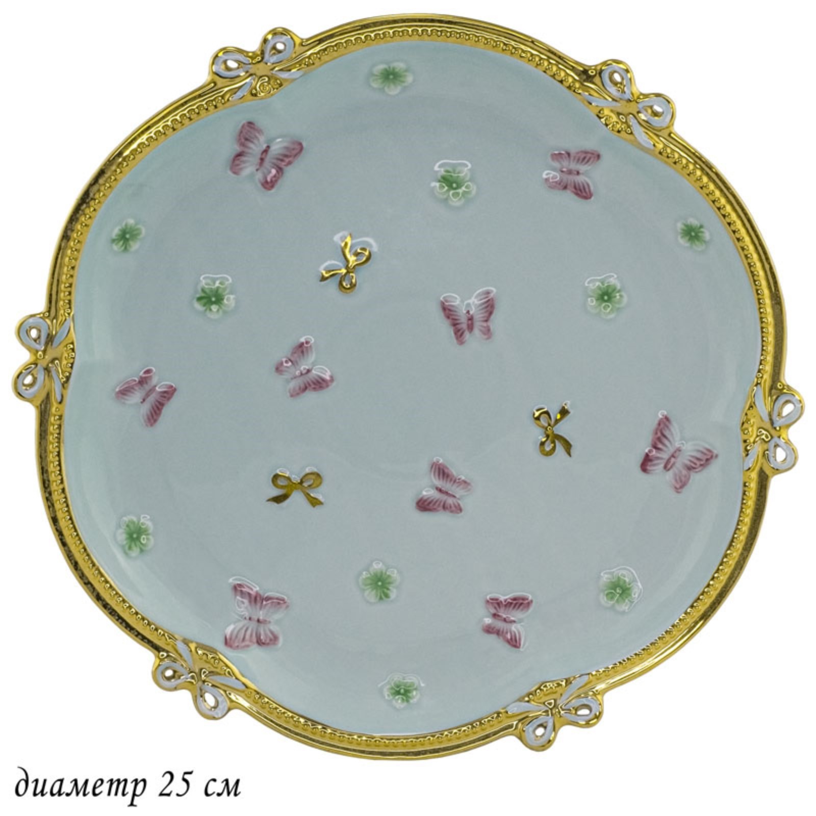 Блюдо круглое Lenardi «бабочки», D=25 см, цвет ментоловый