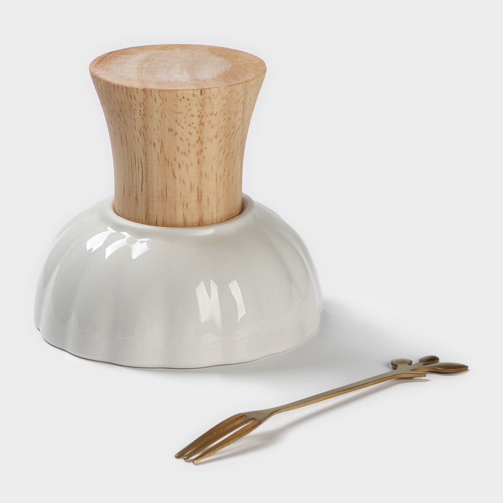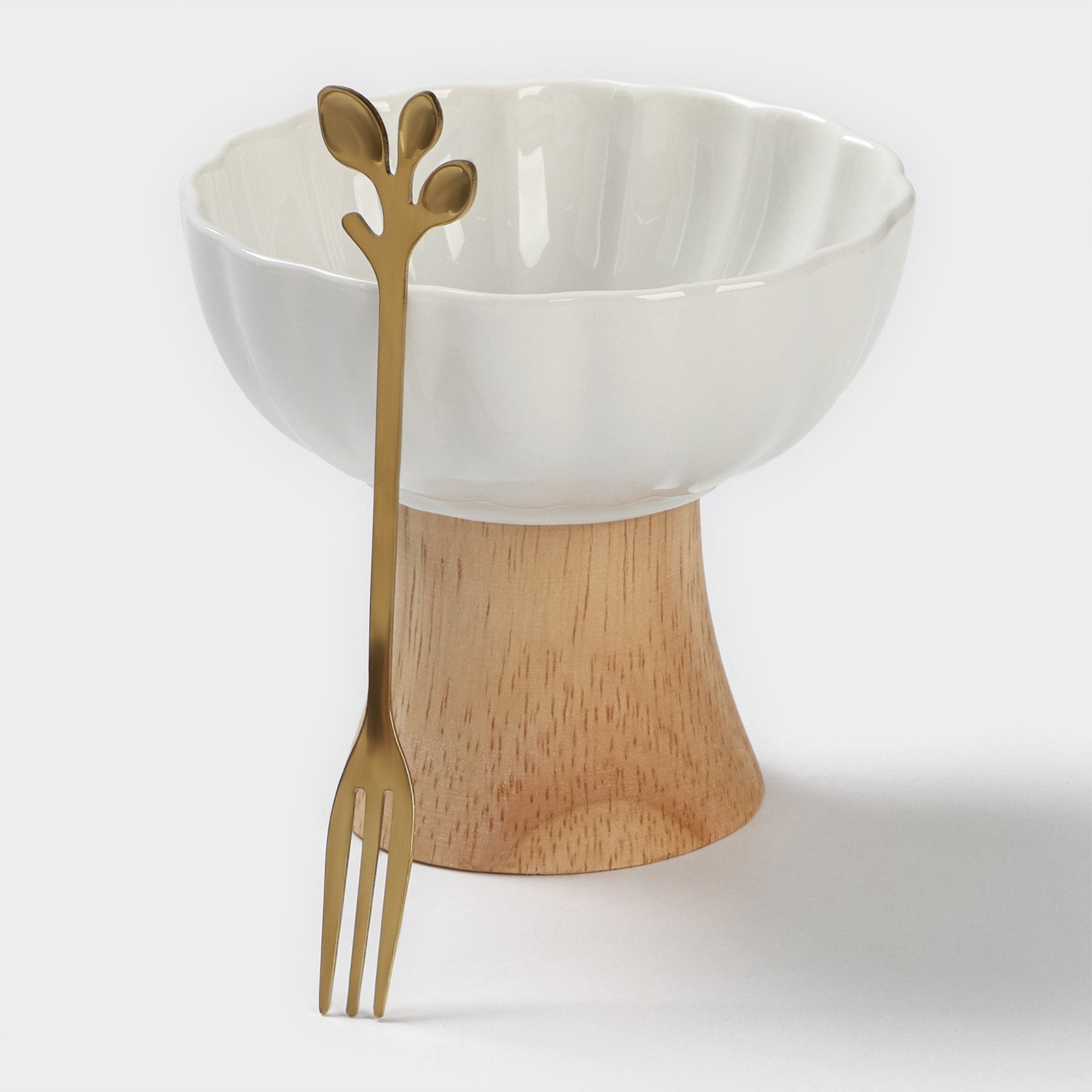 Креманка керамическая, 2 предмета: креманка D=10 см, вилка H=13 см, цвет белый