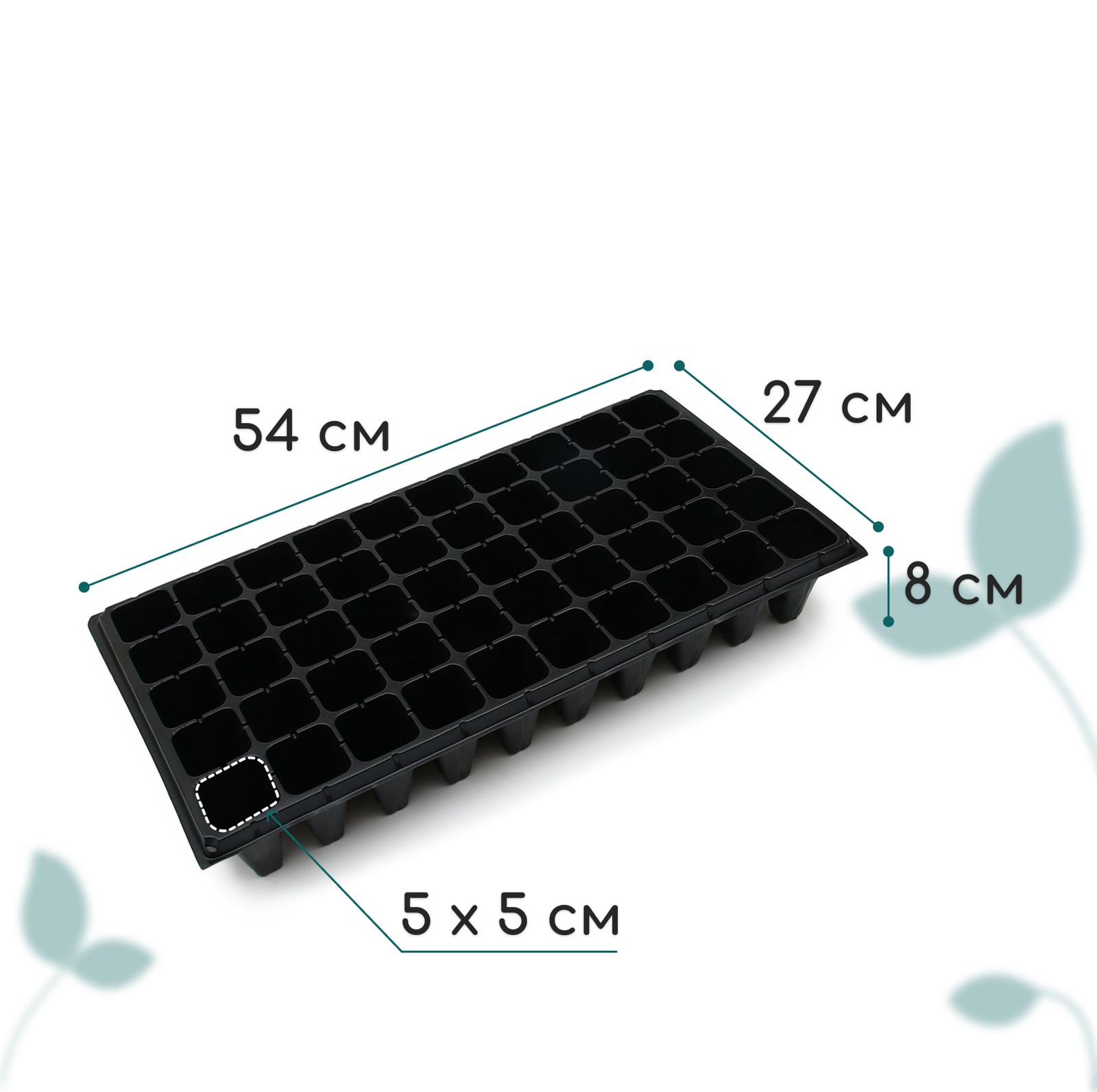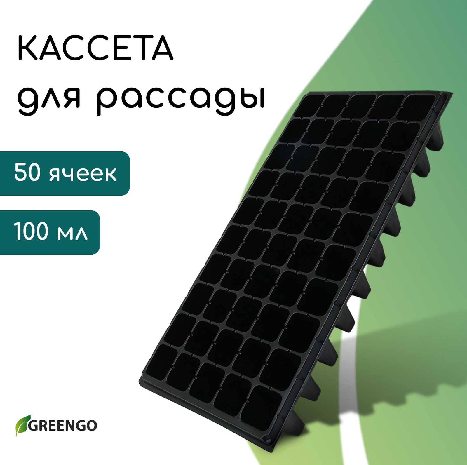 Кассета для рассады, 50 ячеек по 100 мл, пластик, чёрная, 54 27 8 см, Greengo