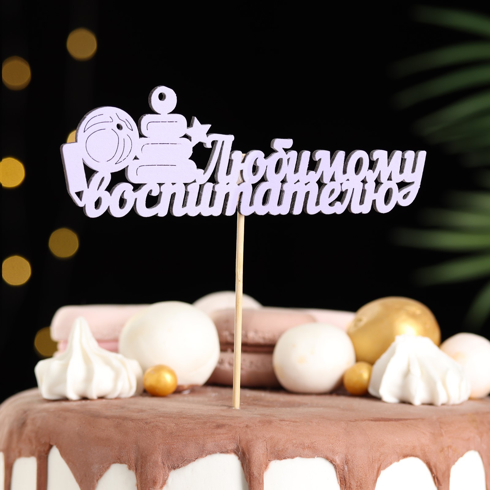 Топпер "любимому воспитателю", 14х28 см, сиреневый, 1 шт.