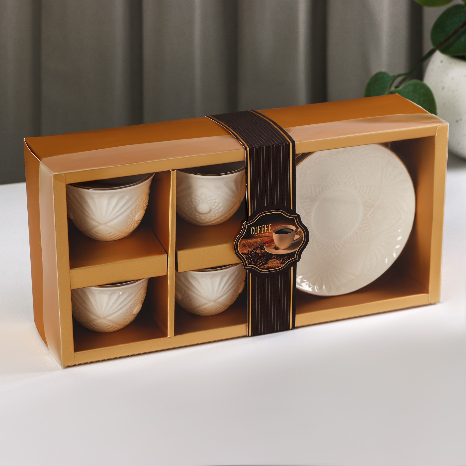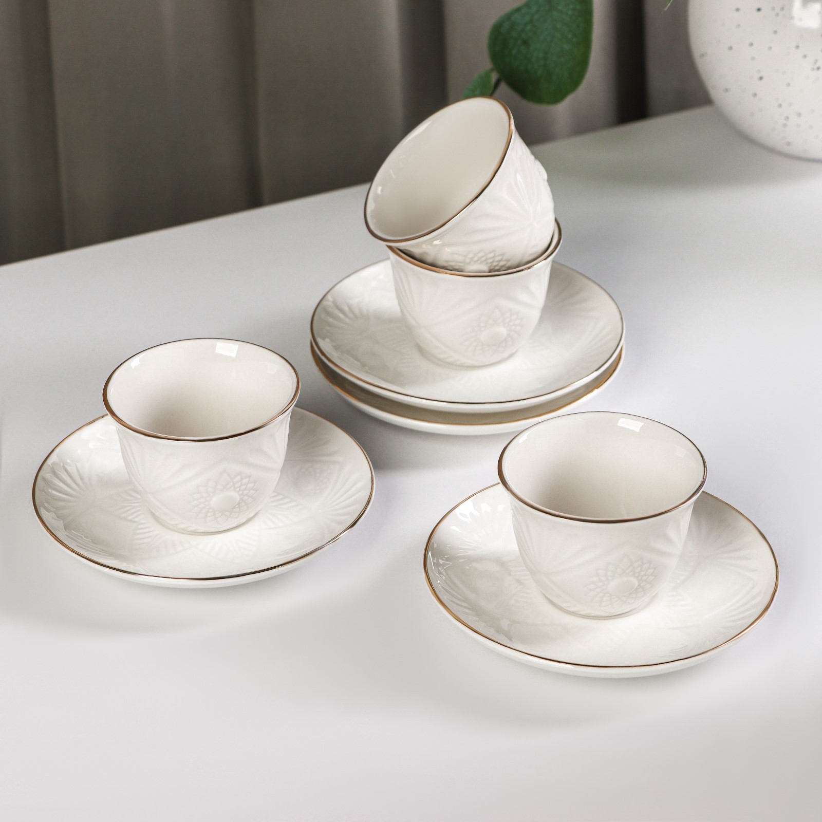 Набор керамический кофейный Coffee, 8 предметов: 4 чашки 70 мл, 4 блюдца, цвет белый