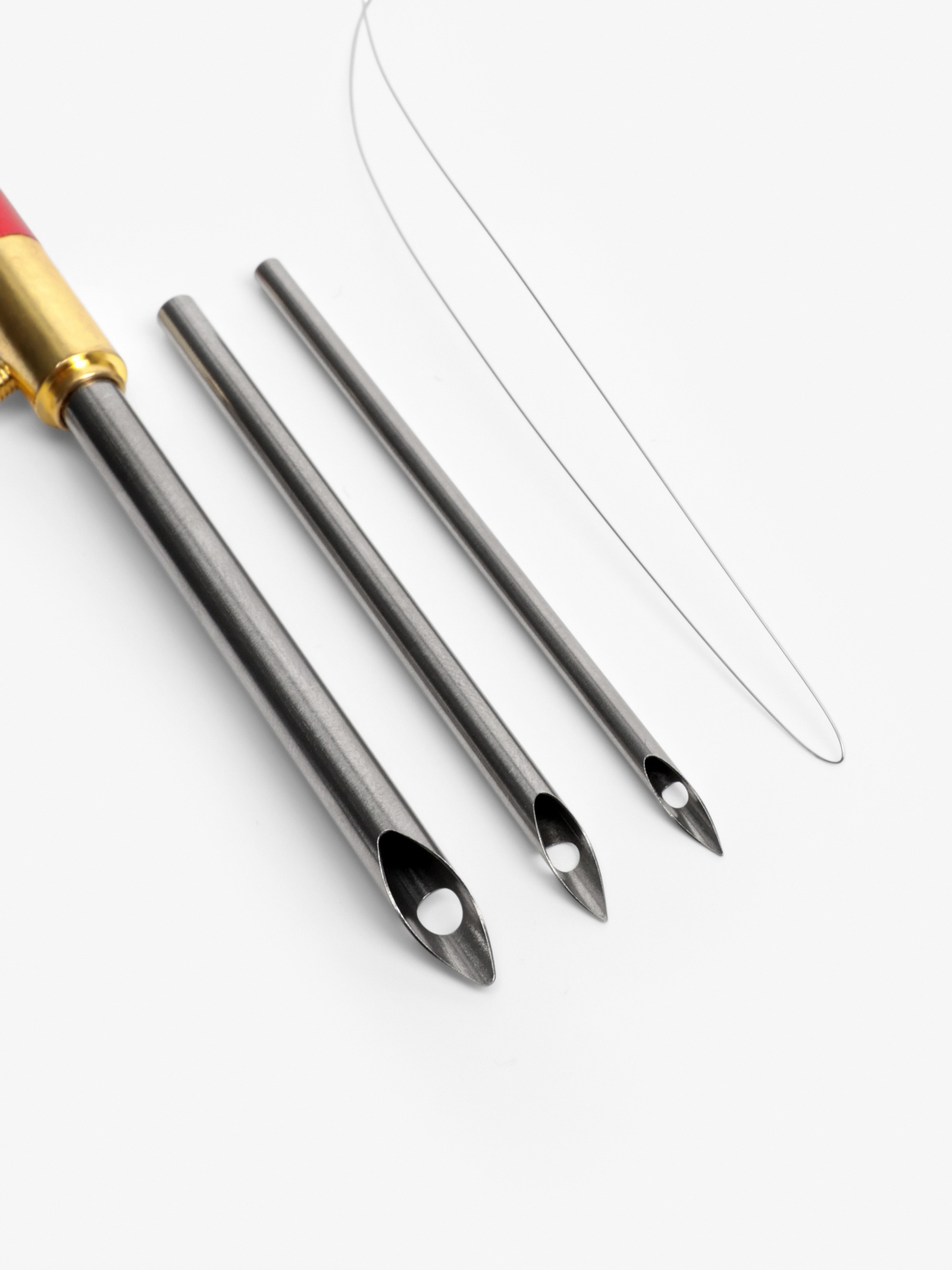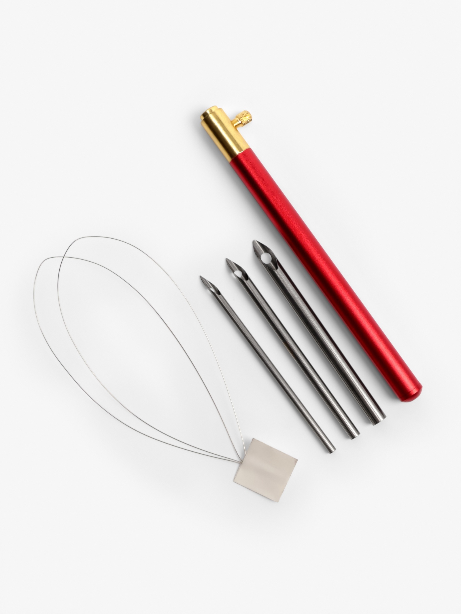 3 иглы с жалами разного диаметра — 2.5, 3.5 и 5 мм.Практичный держатель для хранения и переноски.Цвет — красный, цвет игры - серебряный, соответствующий стандартной маркировке профессиональных инструментов.Подходят для ковровой техники вышивания — обеспечивают точное формирование ворса.Как это помогает