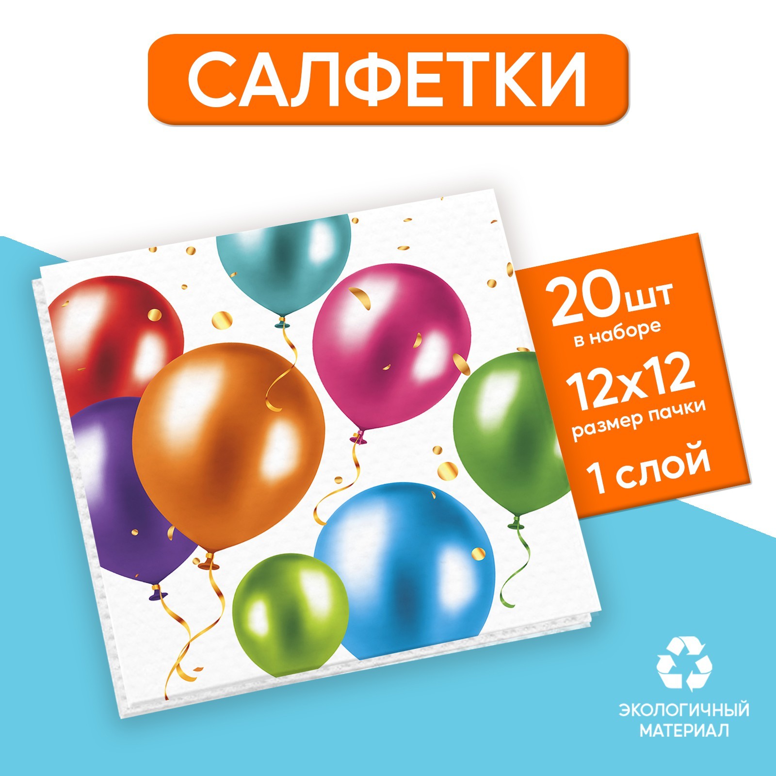 Салфетки бумажные однослойные «воздушные шары», 24 X 24 см, в наборе 20 шт.
