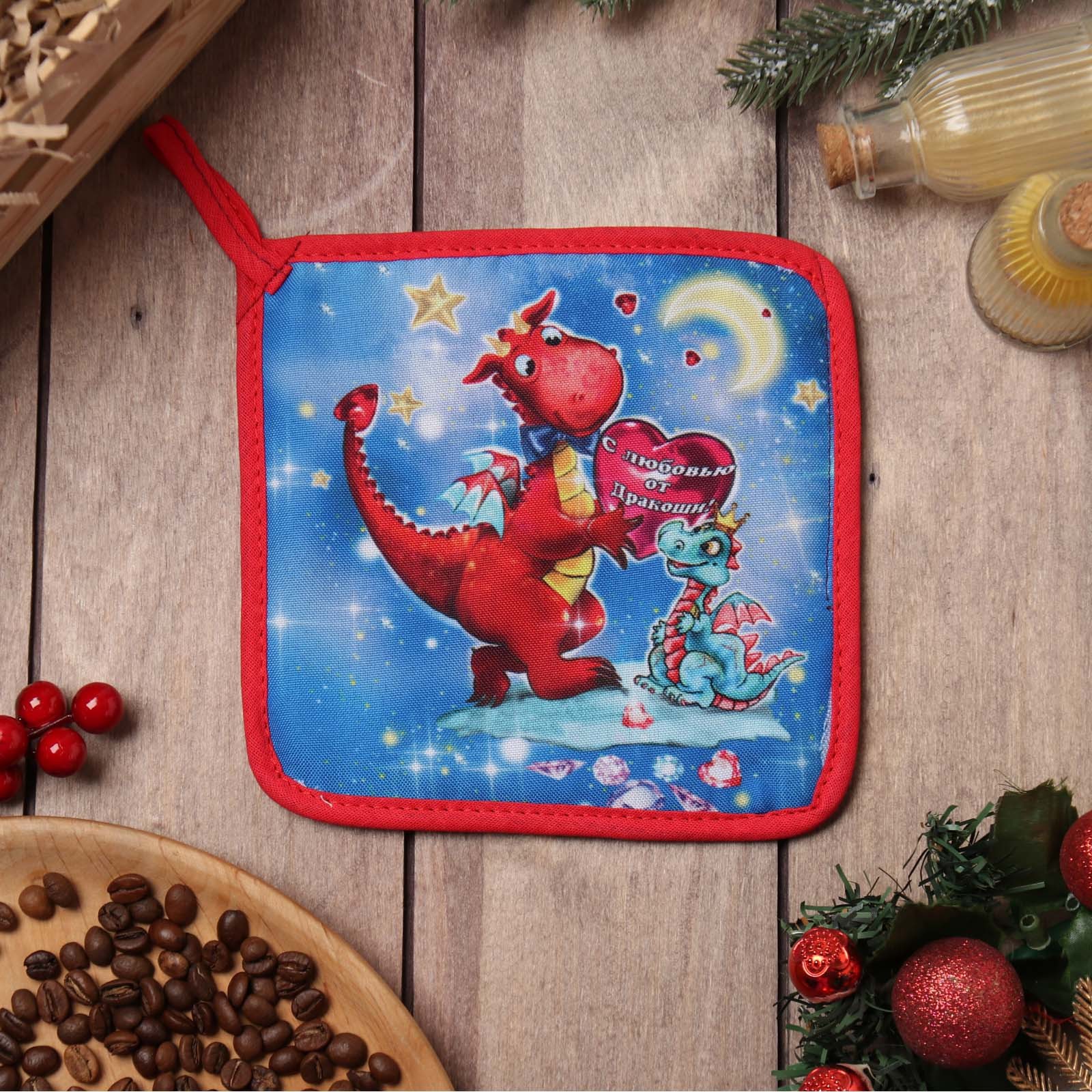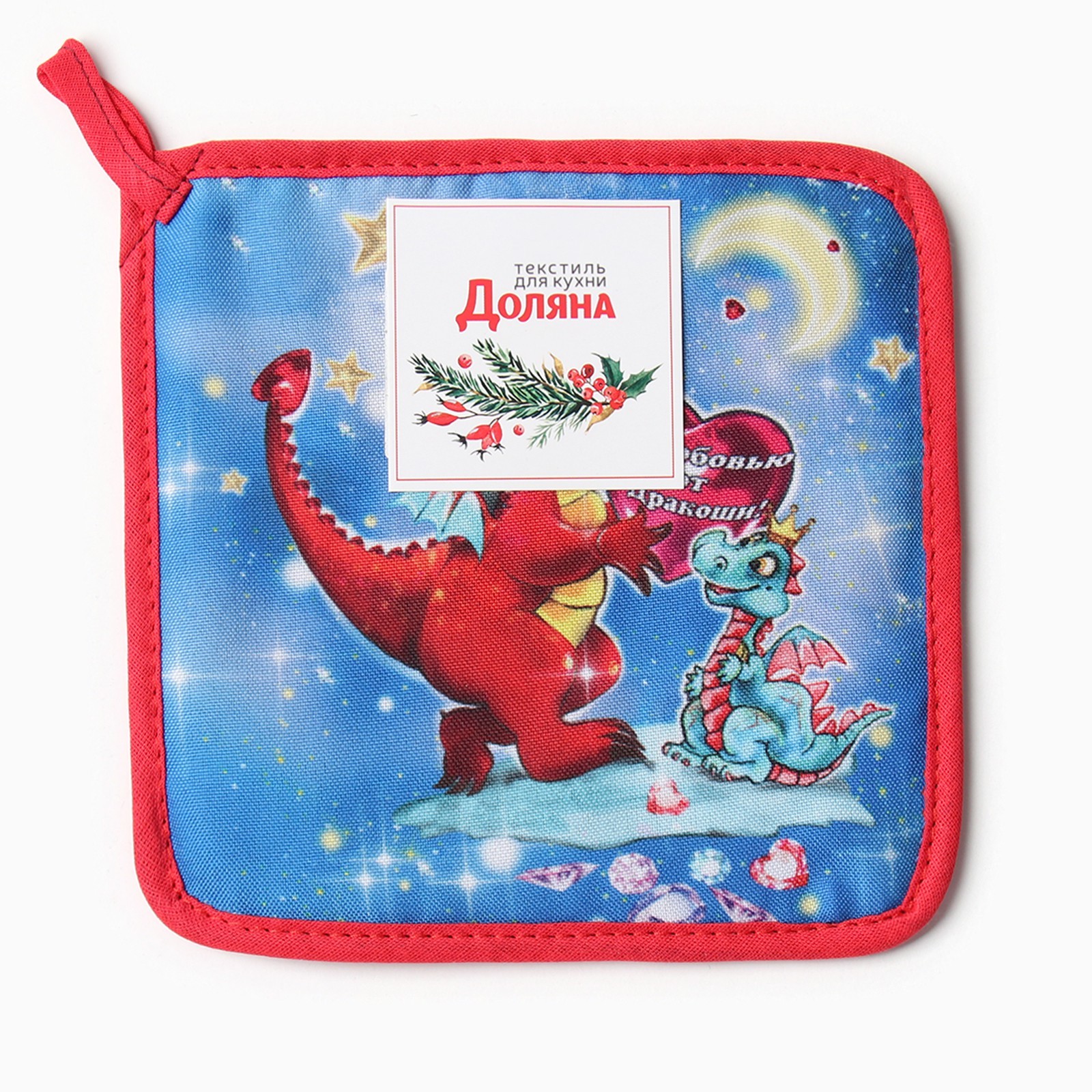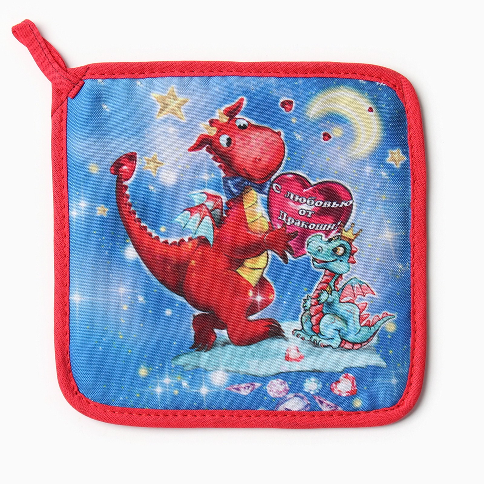 Прихватка "с любовью от дракоши" 17х17 см, 35% хл, 65% пэ, ватин 250 г/м2