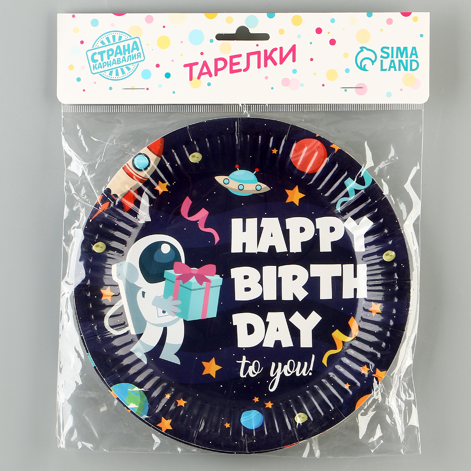 Тарелки бумажные «с днём рождения» космонавт, 6 шт