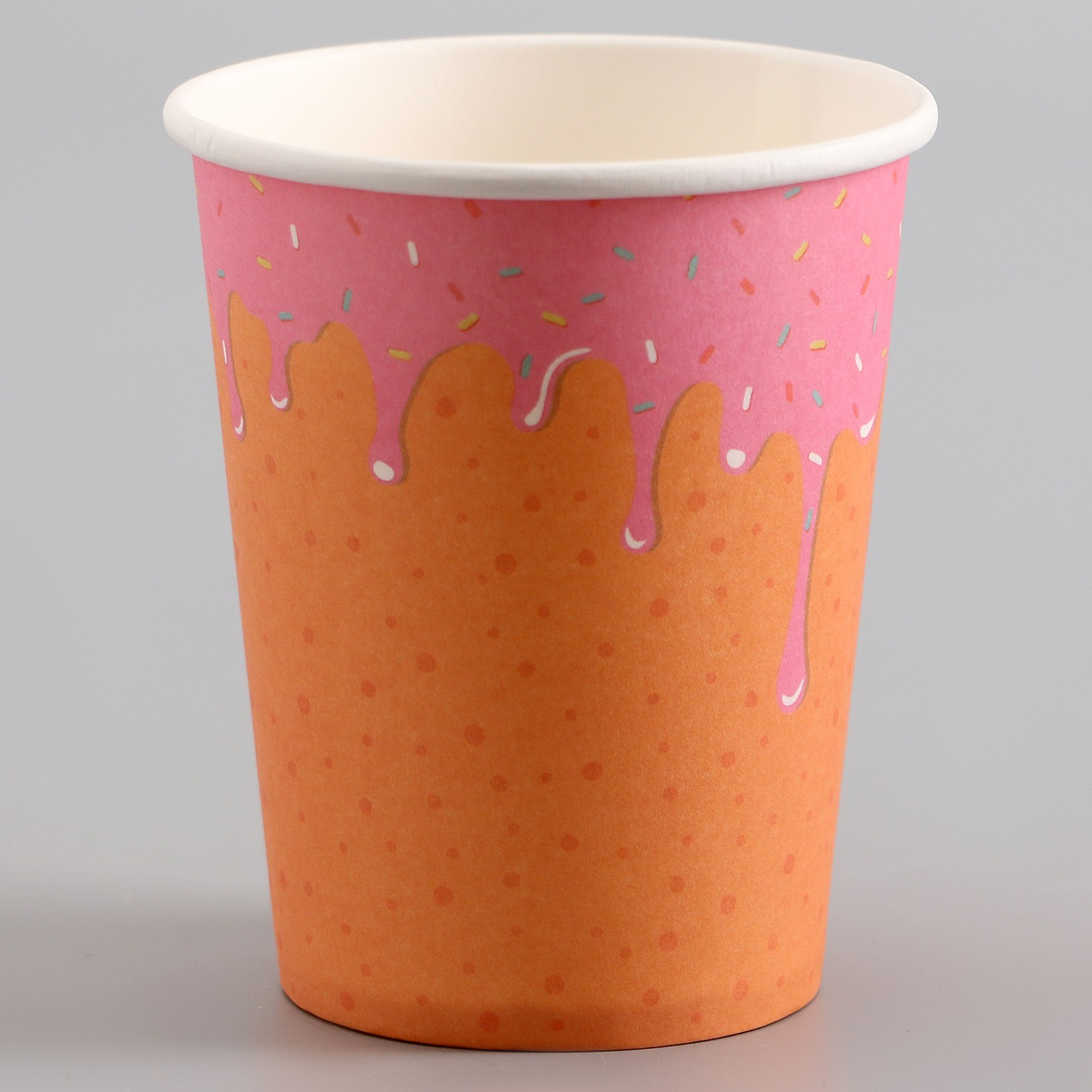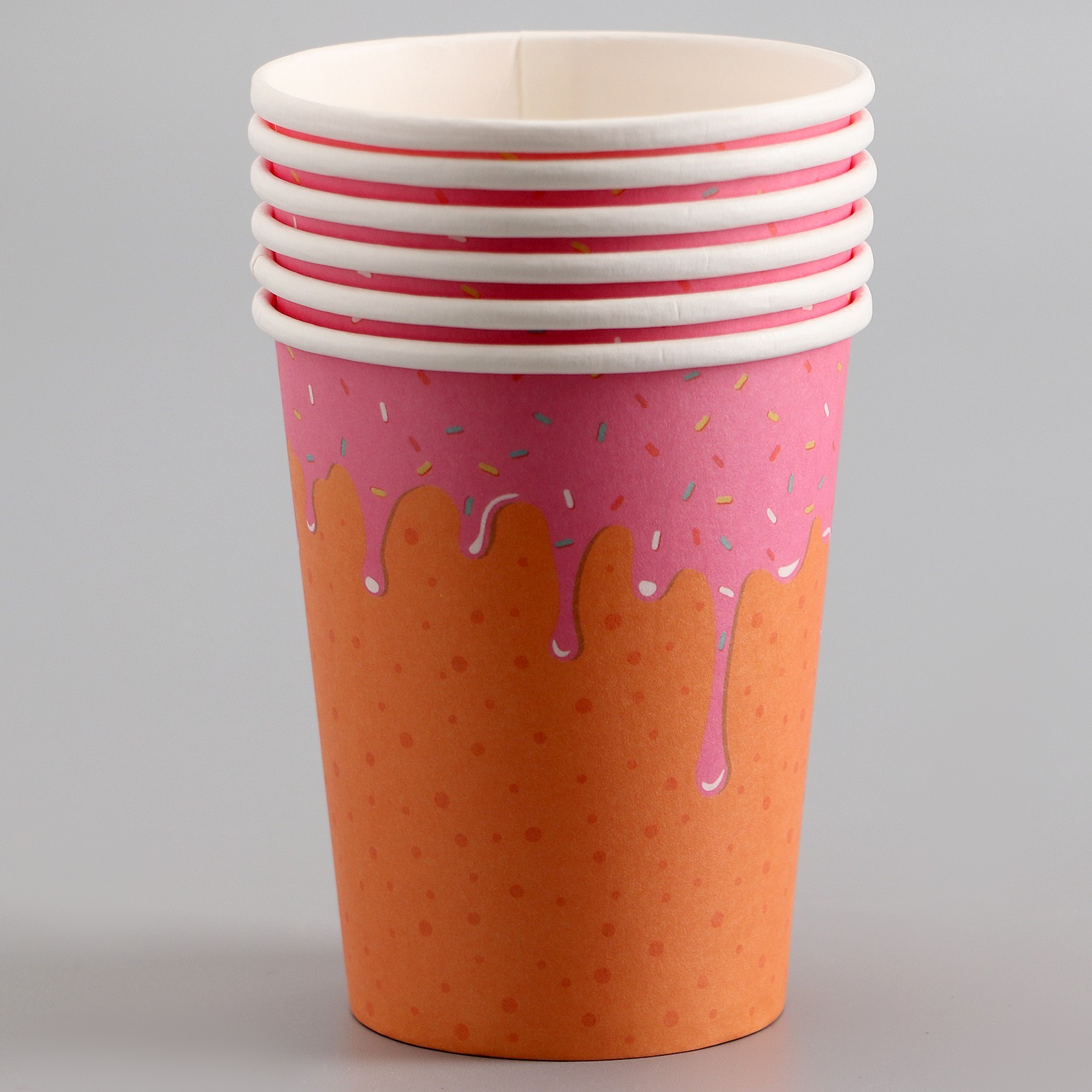 Стаканы бумажные «пончик», 6 шт.. Посуда изготовлена из высококачественной бумаги без добавления поликарбоната, меламина и поливинилхлорида. Такие изделия безопасны, они не «раскисают» при взаимодействиями с продуктами питания. Преимущества бумажной посудыЭкологически безвредна: полностью разлагается в естественной среде. Гигиеничность и безопасность: при изготовлении используется первичный и вторичный картон с ламинацией, крафт-бумага и пищевые красители. Выдерживает высокую и низкую температуру. Сохраняет вкус еды и напитков, не выделяя вредных веществ, при нагреве. Тарелки и стаканы из бумаги приятнее на ощупь, чем аналогичная посуда из пластика. Такую посуду не надо мыть и невозможно разбить. Где применяется бумажная посуда:детские заведения и мероприятия, организация питание на свежем воздухе, точки продажи фастфуда, летние кафе и бистро, вендинг и офисы, доставка обедов. Цвет: Оранжевый Диаметр, см: 7.5 Количество слоёв: 1 В наборе, шт.: 6 Объём, мл: 250 Материал: Бумага Вид: Стакан  развернуть описание ▼