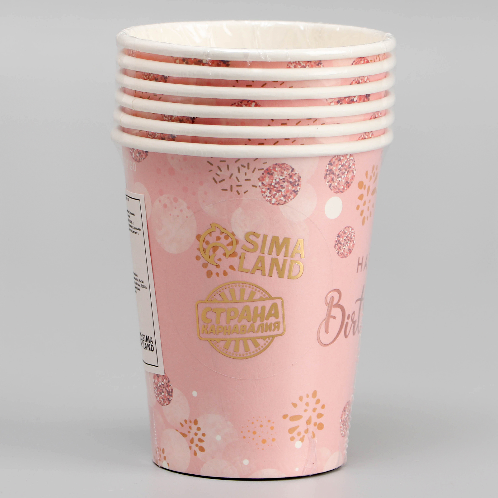 Стаканы бумажные «с днём рождения», 6 штrc[-1]:r[5]c.