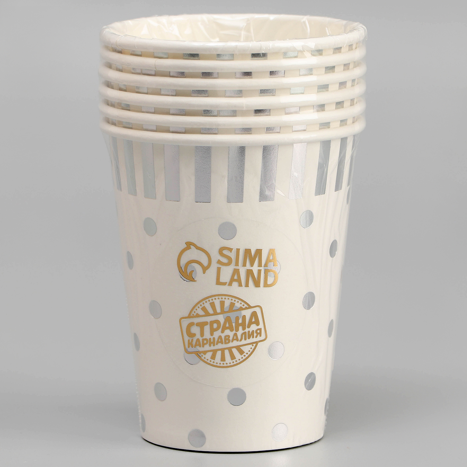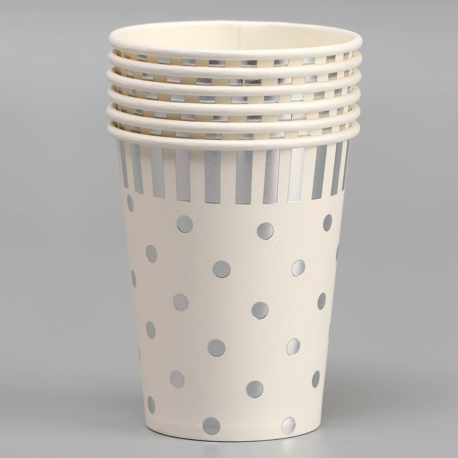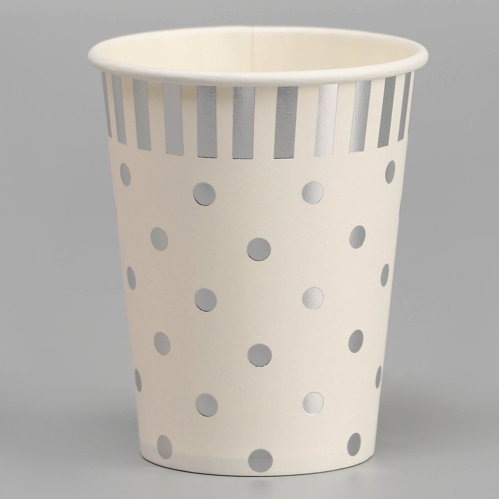 Стаканы бумажные «горох», 6 шт., цвет серебро