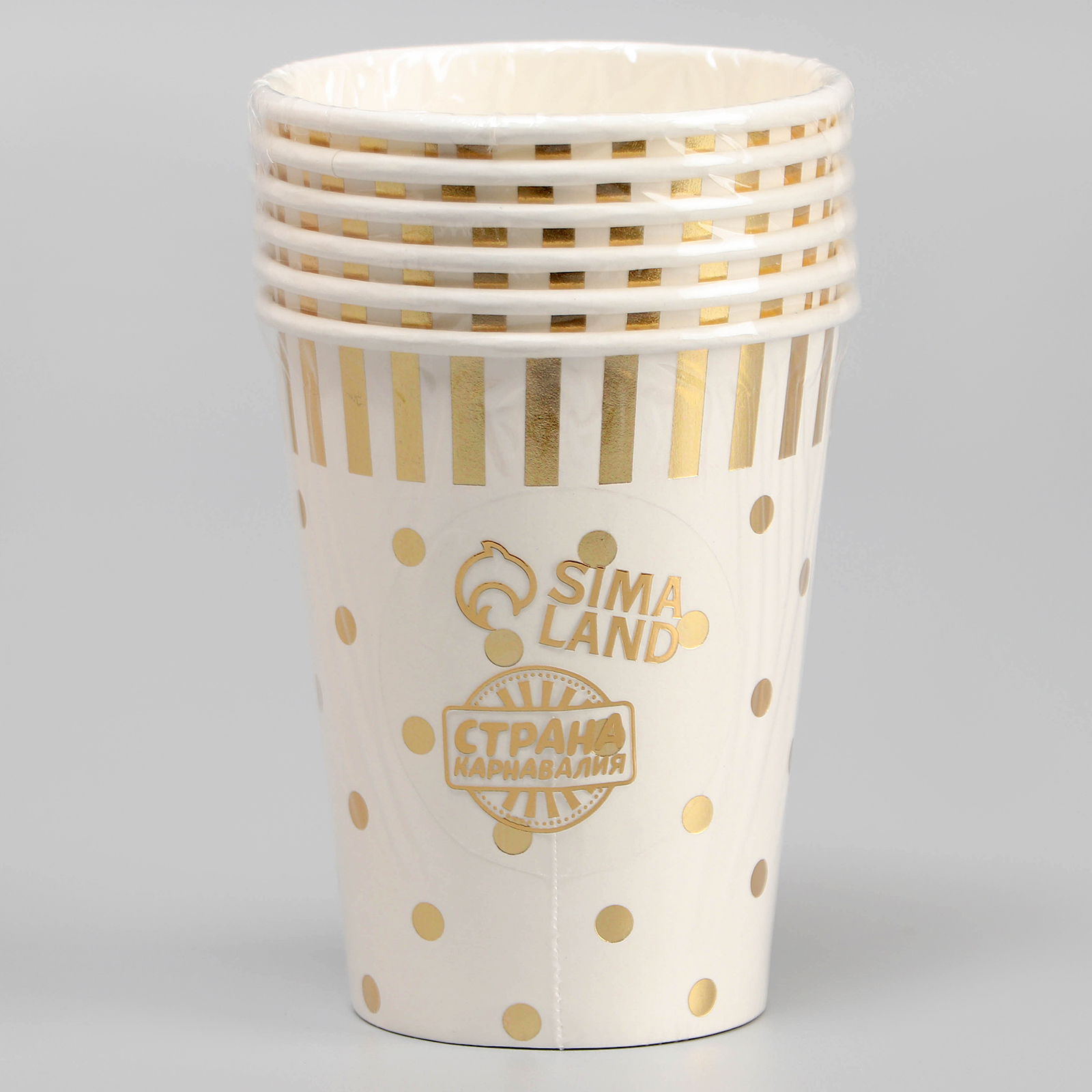 Стаканы бумажные «горох», 6 шт., цвет золото