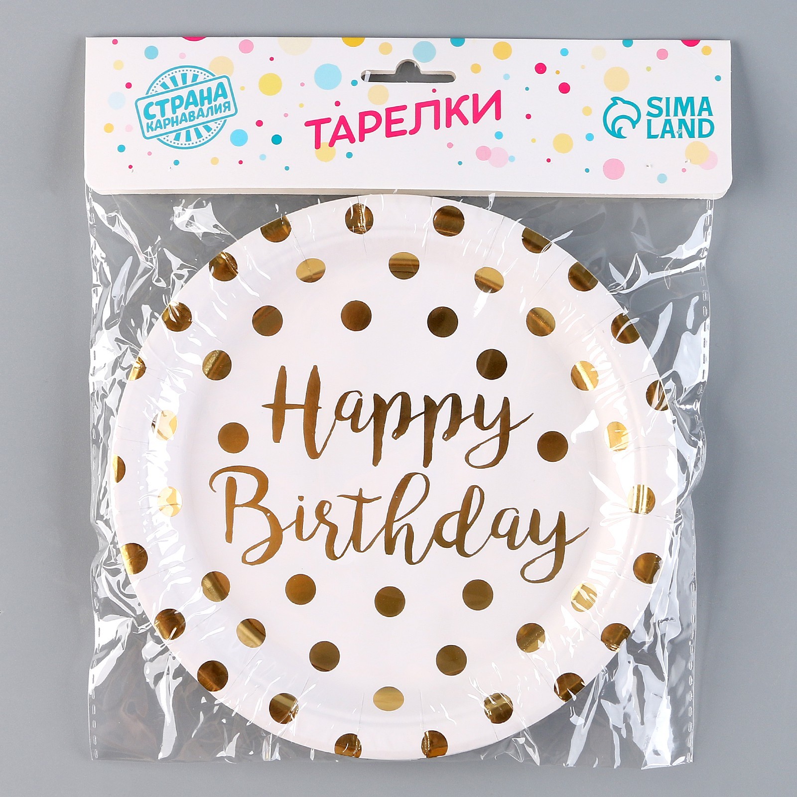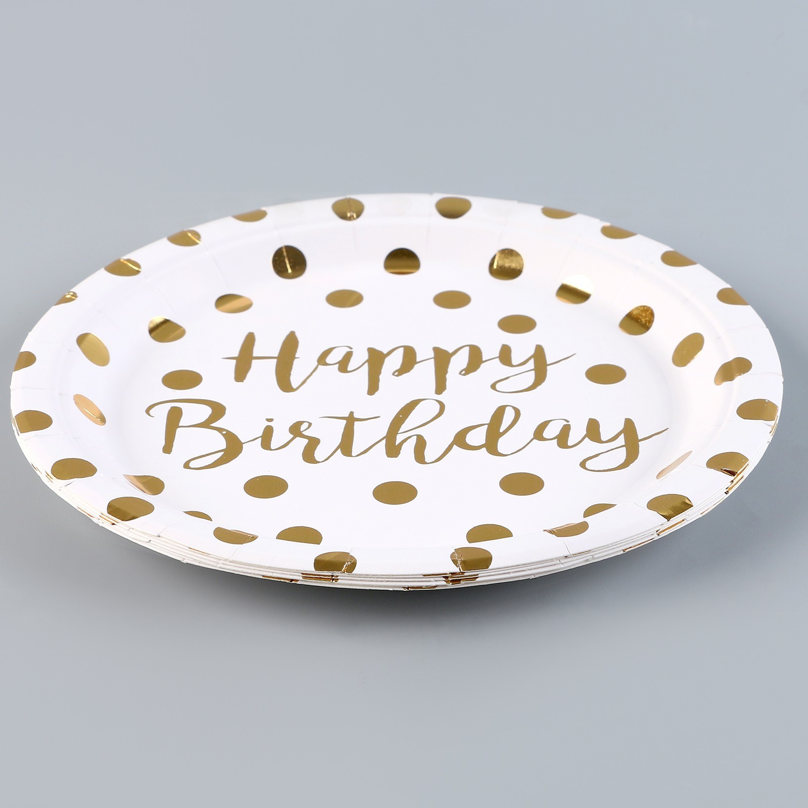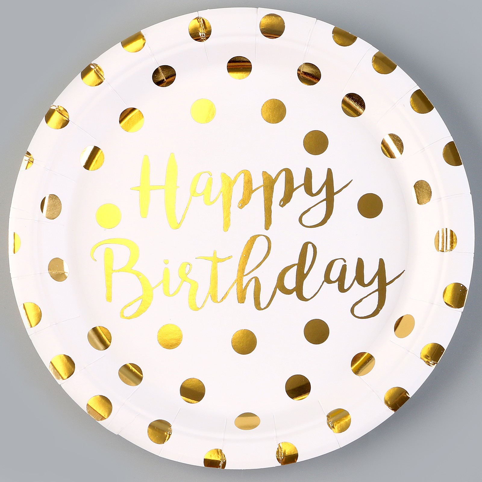 Тарелка бумажная «с днём рождения», горох, в наборе 6 шт., цвет золото