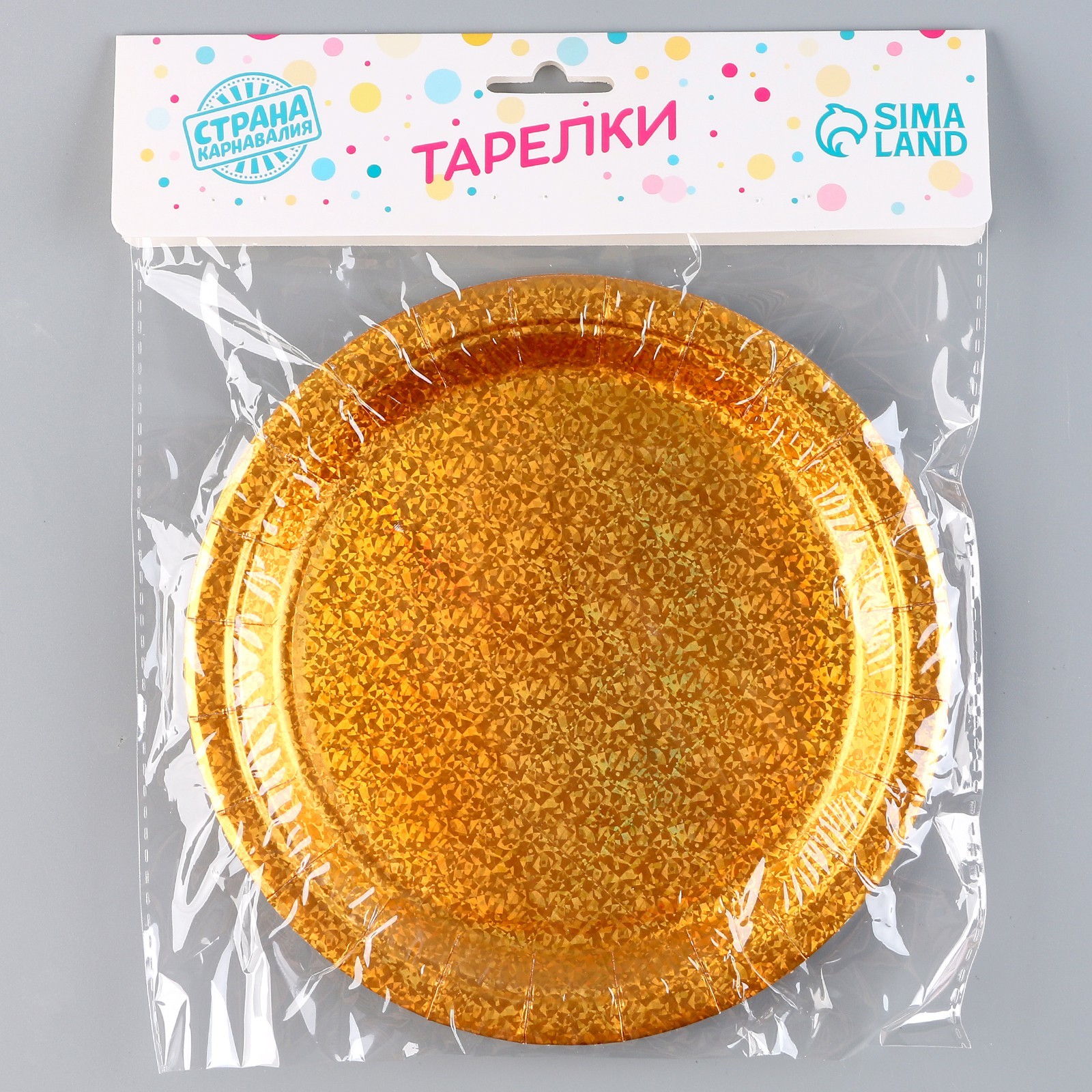 Тарелка бумажная «голография», в наборе 6 шт., цвет золото