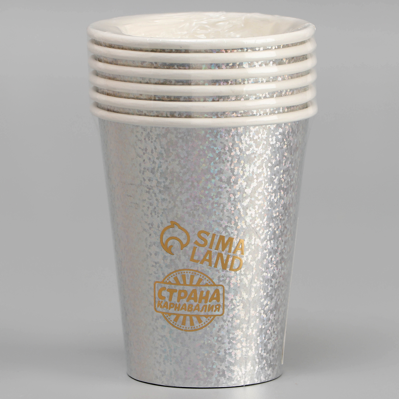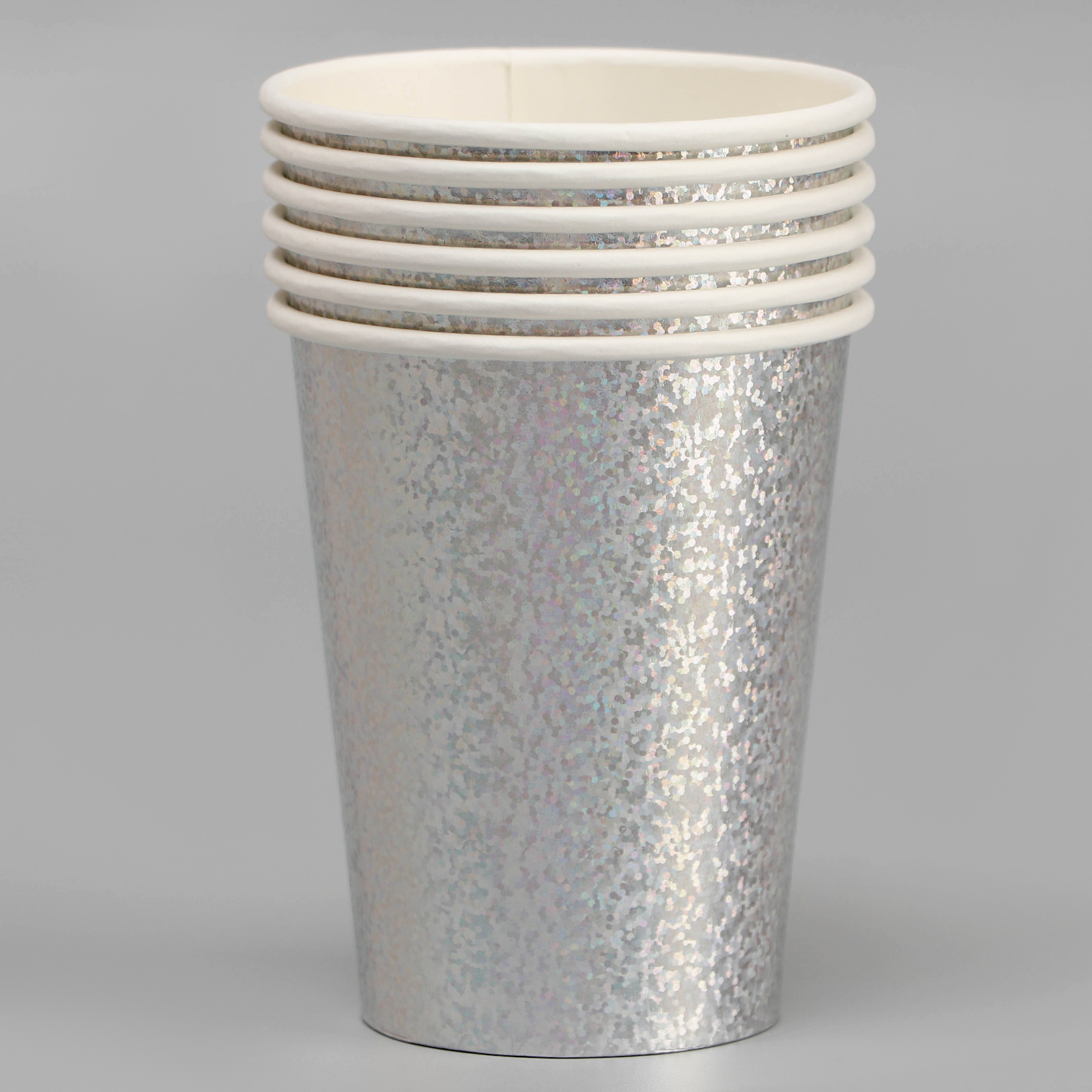 Стаканы бумажные «голография», 6 шт., цвет серебро