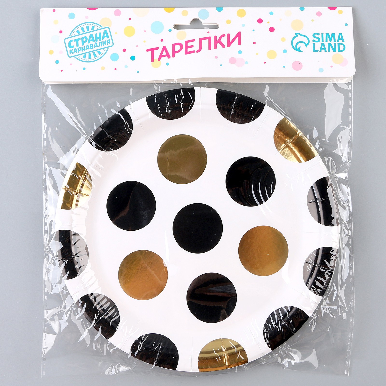 Тарелка бумажная «горох», в наборе 6 шт., цвет чёрный