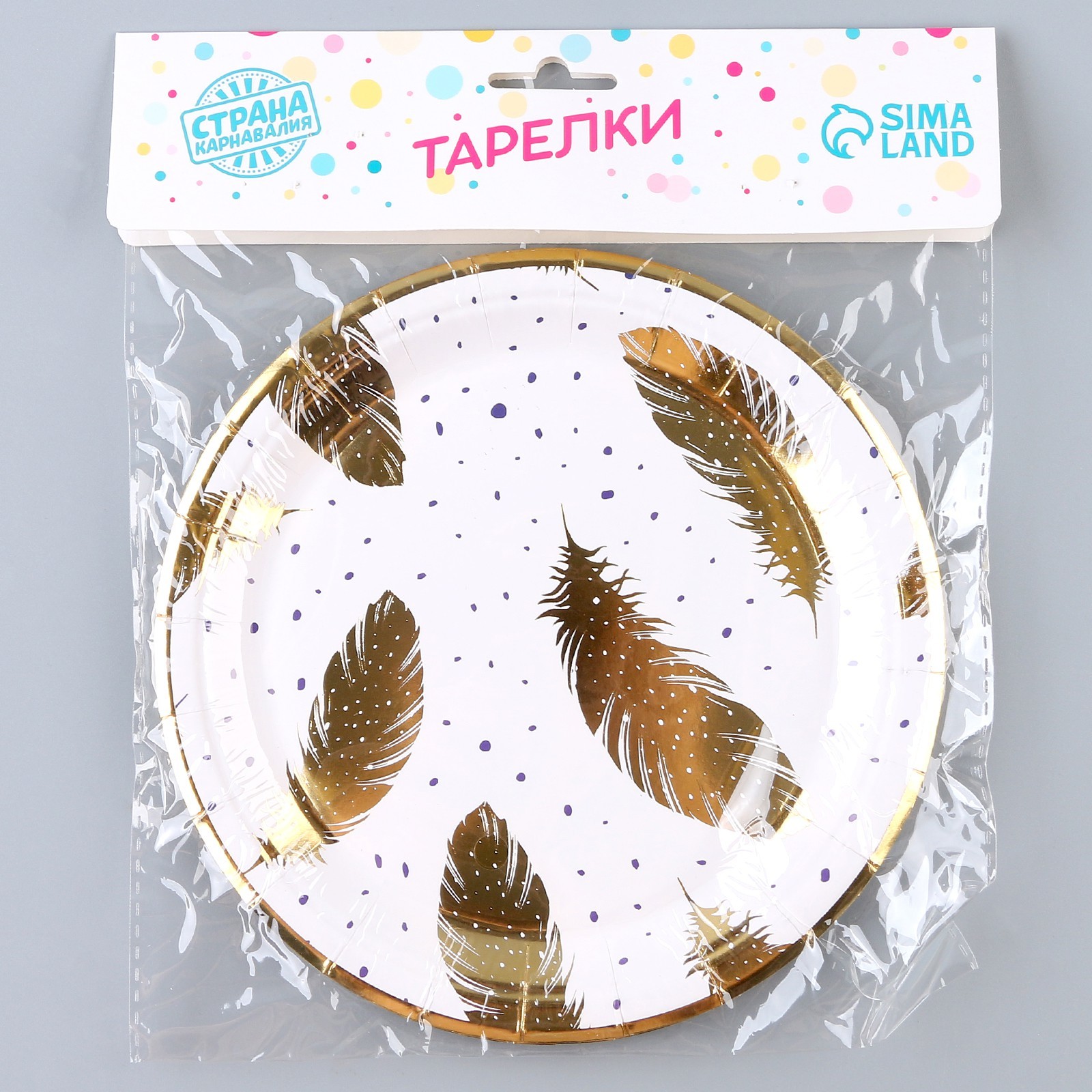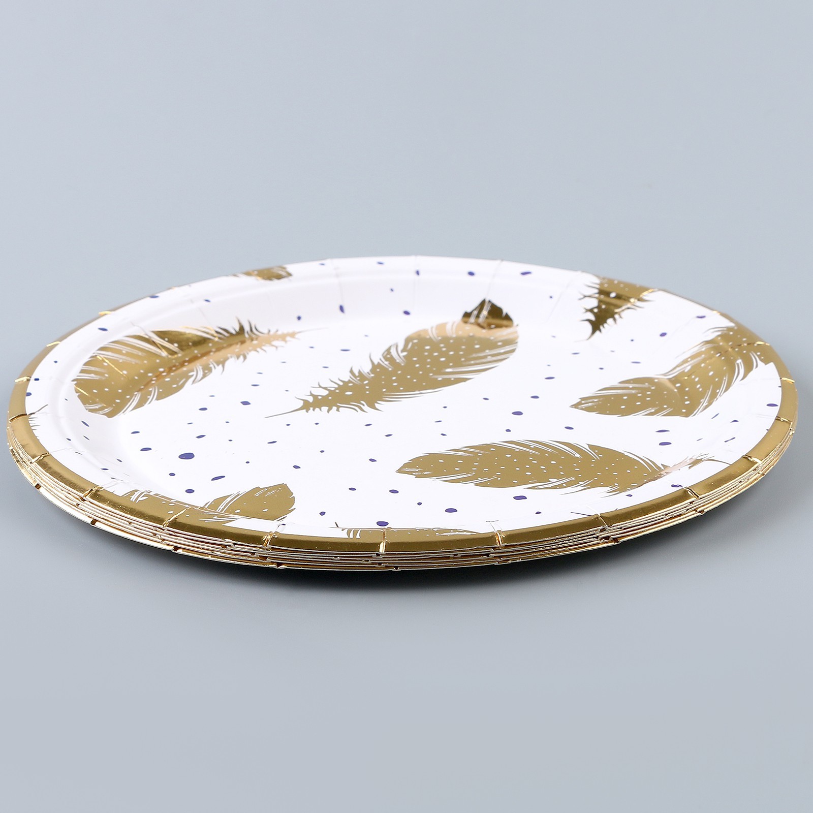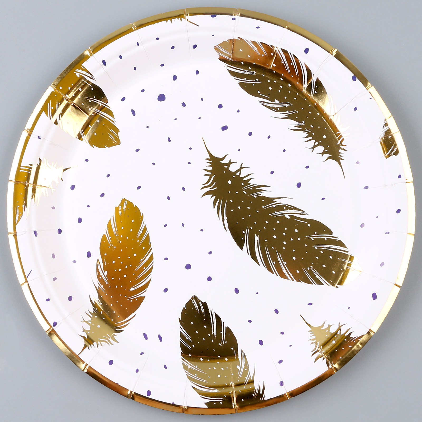Тарелка бумажная «золотые перья», в наборе 6 шт.