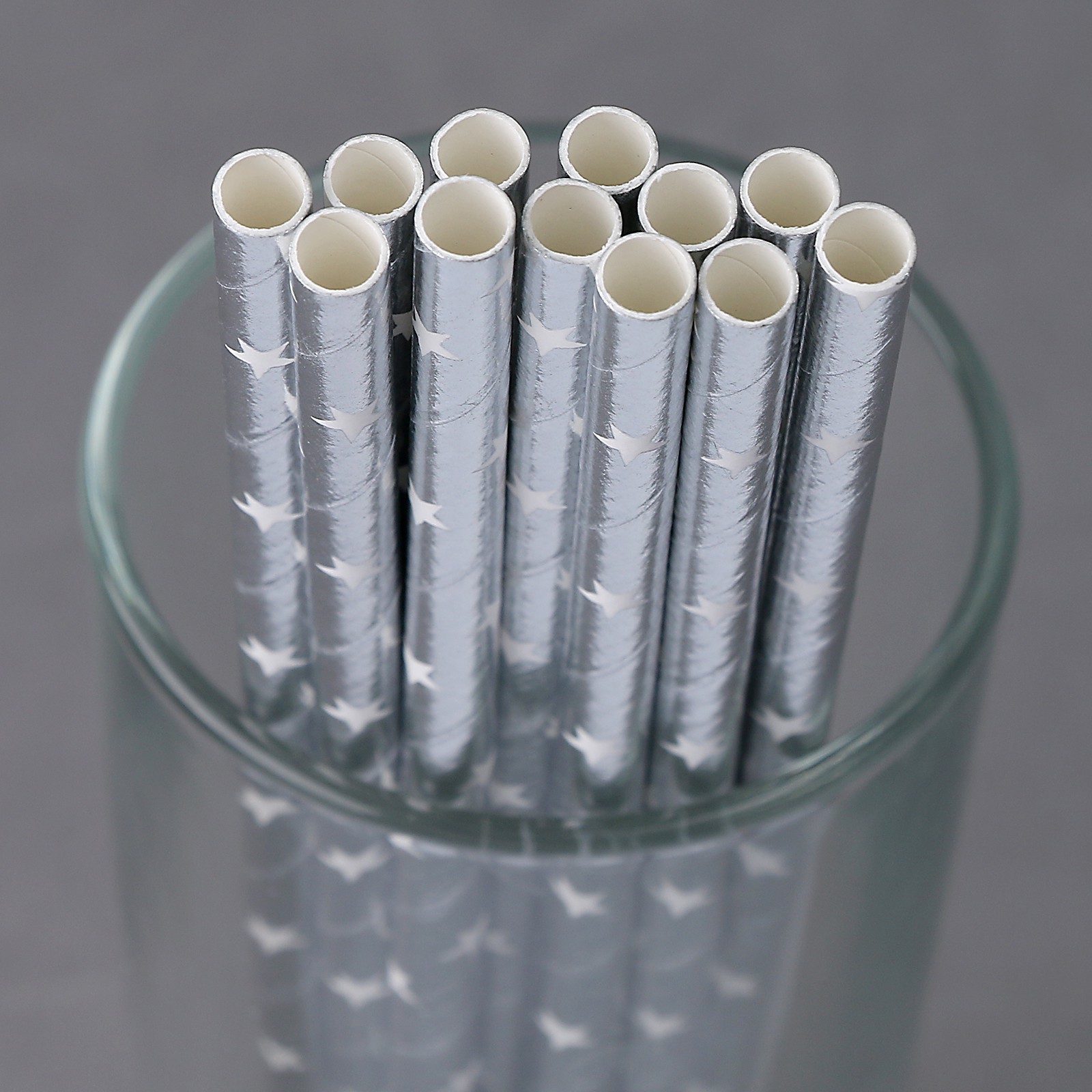 Трубочки для коктейля «звёзды» набор 12 шт., цвет серебро