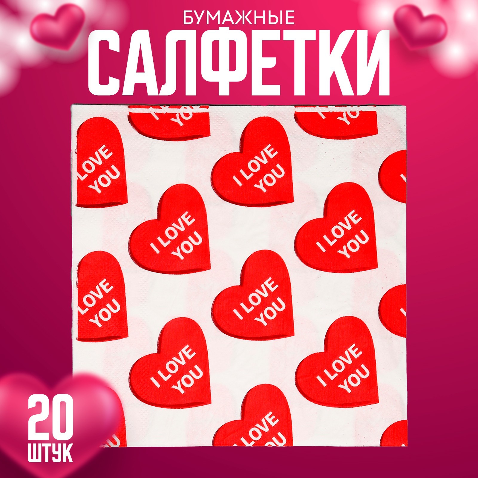 Салфетки бумажные «я люблю тебя», в наборе 20 шт.