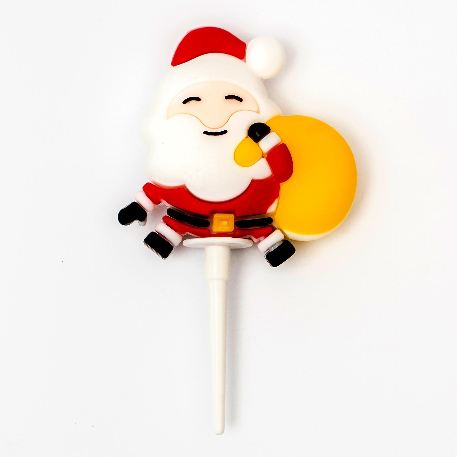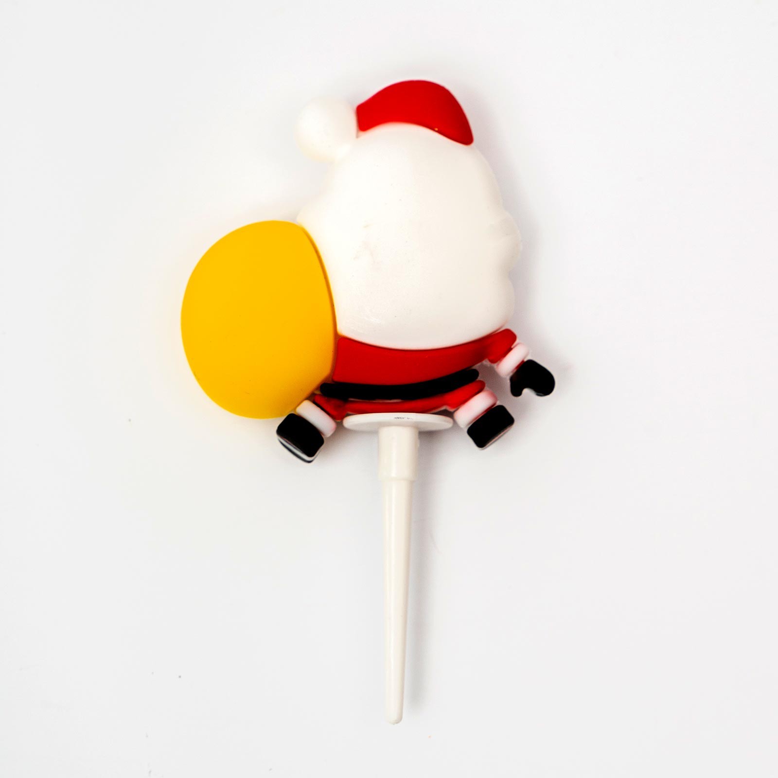 Украшение для торта «дед мороз с мешком». Цвет: Белый Цвет: Красный Высота держателя, см: 4 Материал: Пластик Вид: Топпер